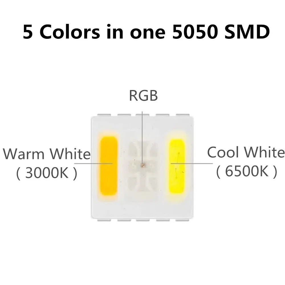 Светодиодная лента RGB 5050 SMD 5 в 1, 60 светодиодов sM, с регулировкой температуры, 12 мм, 12 в пост. Тока, белый и теплый белый