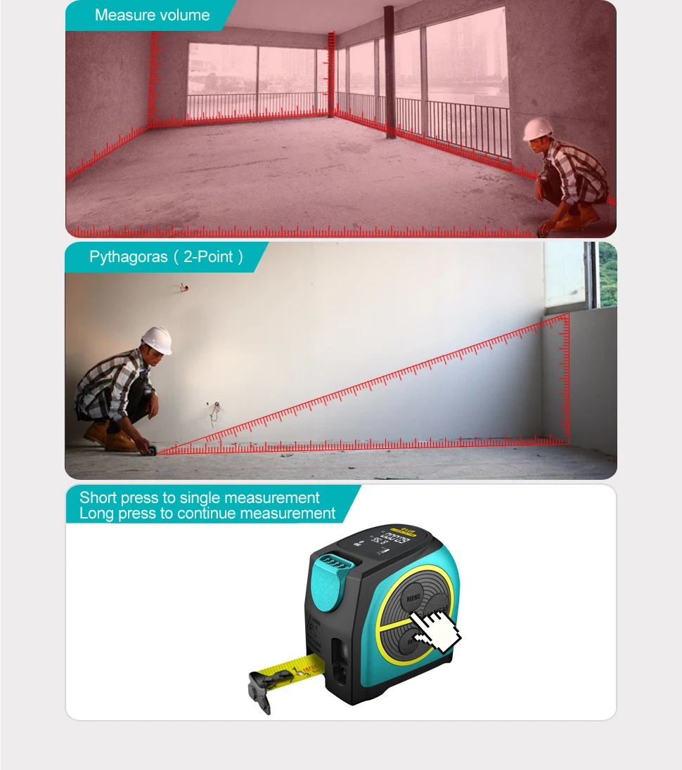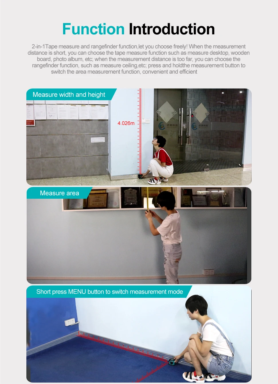Mileseey цифровой лазерный дальномер и лазерная рулетка 2 в 1 с ЖК-дисплеем цифровая лазерная лента M
