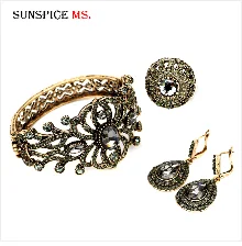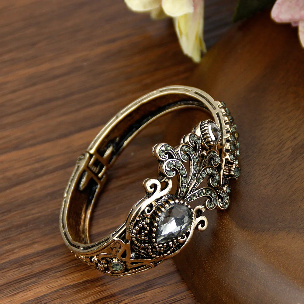 Браслет-манжета Женский, винтажный, с серым индийским камнем