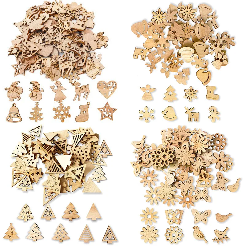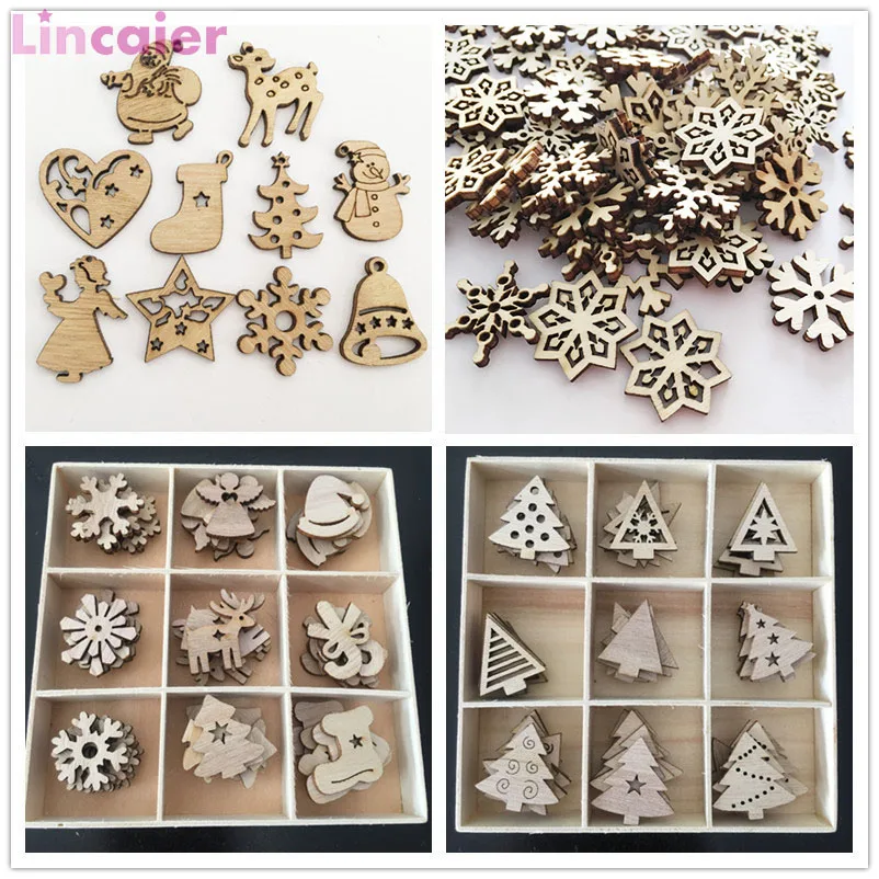 Мини Деревянные рождественские украшенияМатериал: деревоРазмер: 1,2 дюйма/3 смФорма: Санта-Клаус, снеговик, олень, снежинки, Рождественская елка
