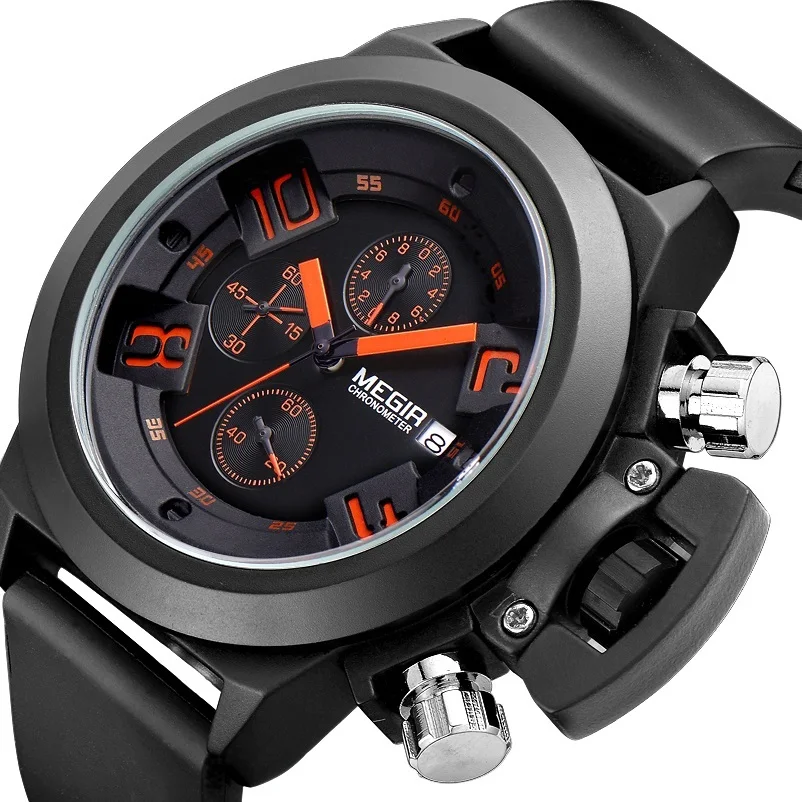 Часы MEGIR Мужские кварцевые в стиле милитари, модные спортивные водонепроницаемые повседневные наручные, с большим циферблатом, с силиконовым ремешком