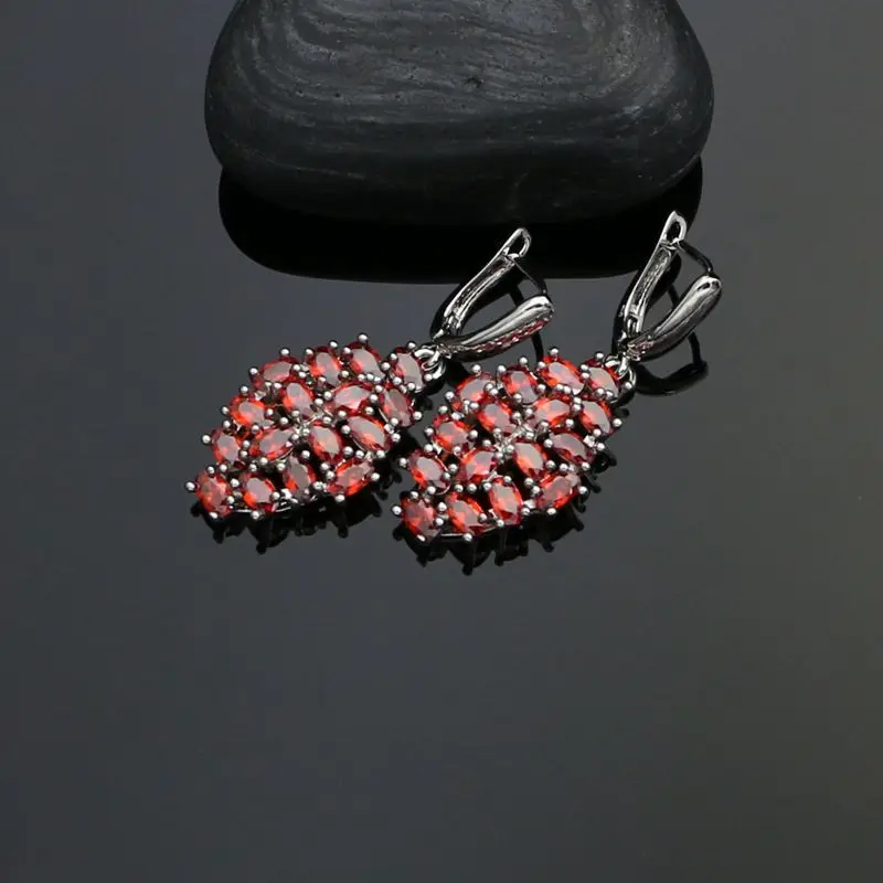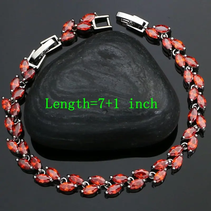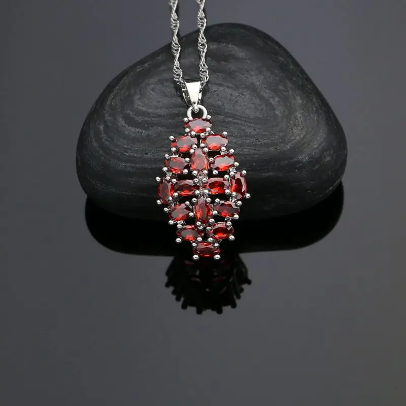 Милые наборы свадебных украшений из серебра 925 пробы для женщин, серьгикулоножерельеКольцобраслет с красным камнем и кубическим цирконием