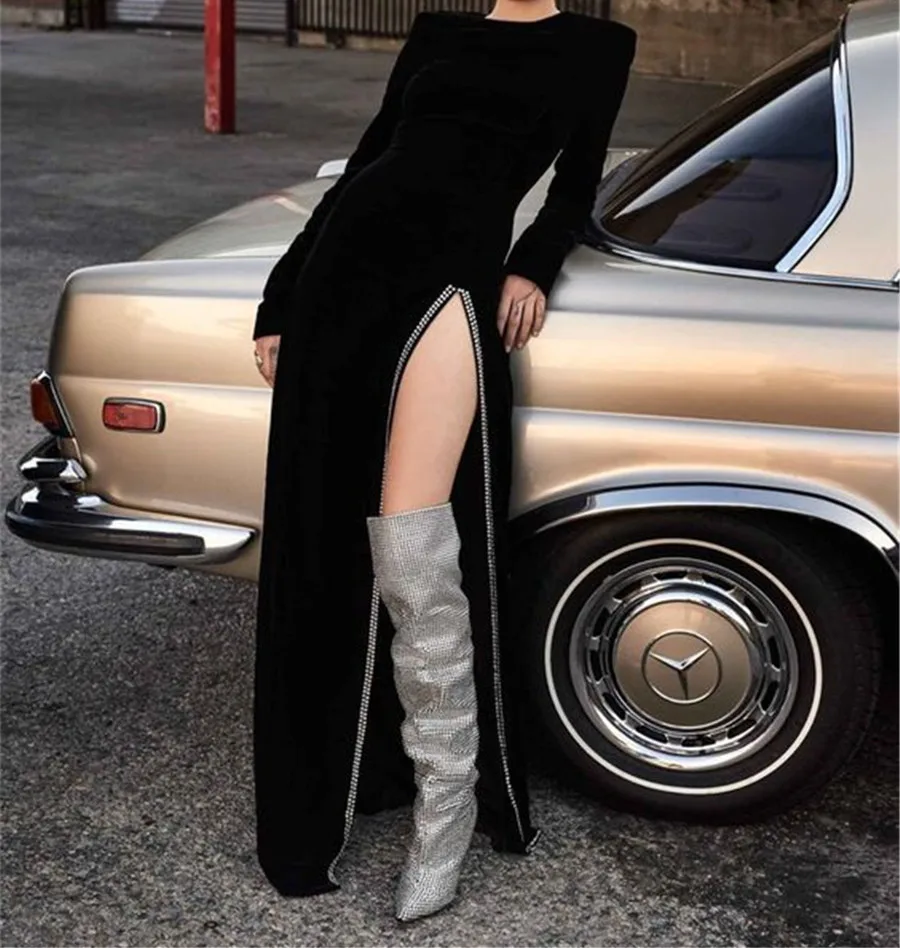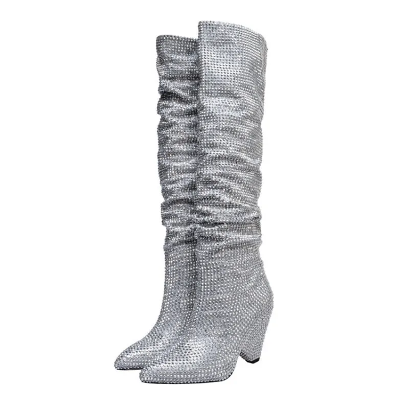 Новинка, роскошные женские сапоги Mstacchi с кристаллами, высокие сапоги до колена с острым носком, сексуальные сапоги стразы на массивном каблуке, женские сапоги