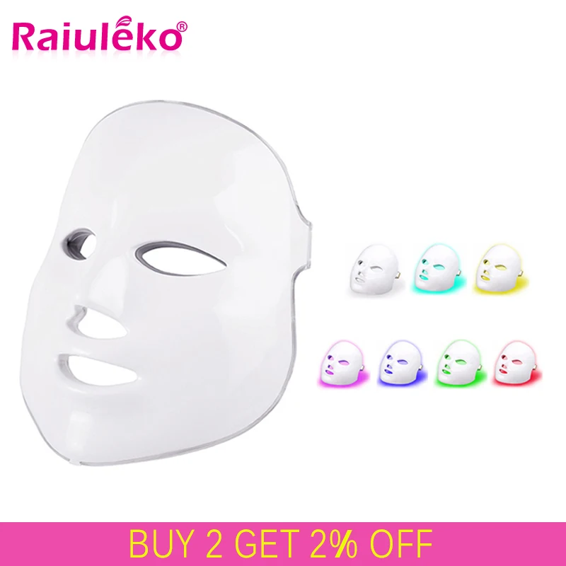 Фотонная электрическая светодиодная маска для лица, 7 цветов, для омоложения кожи шеи, против морщин, акне, салона красоты, домашнего использования, массажа
