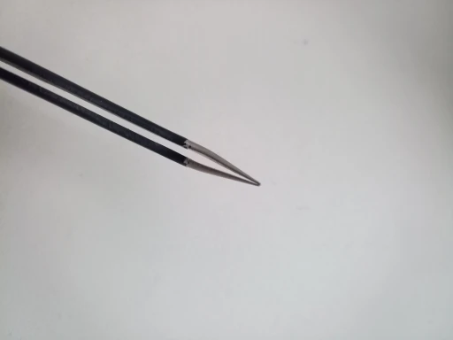 Эти плоскогубцы из нержавеющей стали окрашены в матовый черный цвет. Это оставляет желать лучшего на шнуре, но в целом Пинцет точный и тонкий для обработки моих образцов микроскопа.