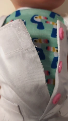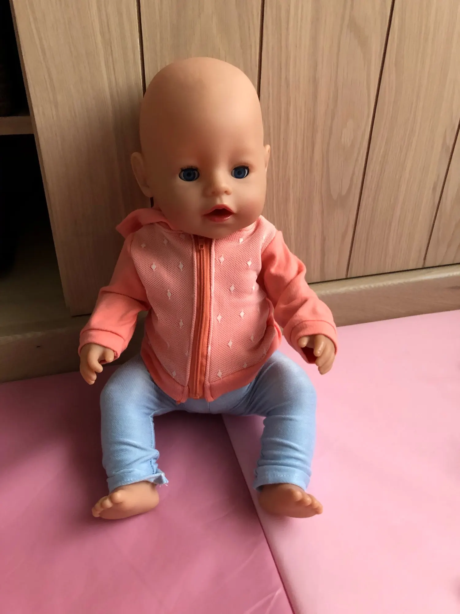 Продавец отправил все быстро, общаться не пришлось. Приятный костюмчик. У нас кукла Baby Born с днем рождения! Залезло в натяг. На штанах с одной стороны вообще никак не обработан край, пока одевали пару ниток вылезло. Но особо не важно это же куклы.