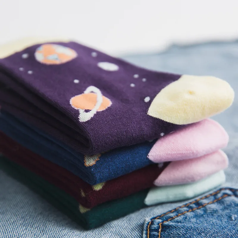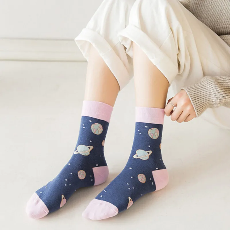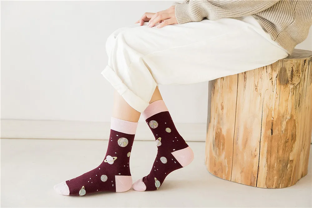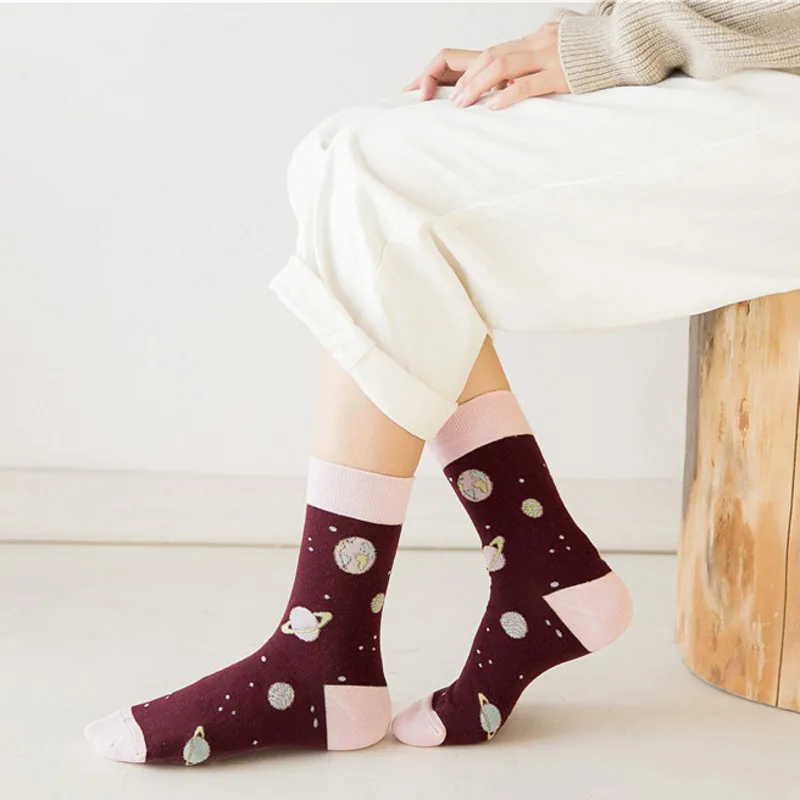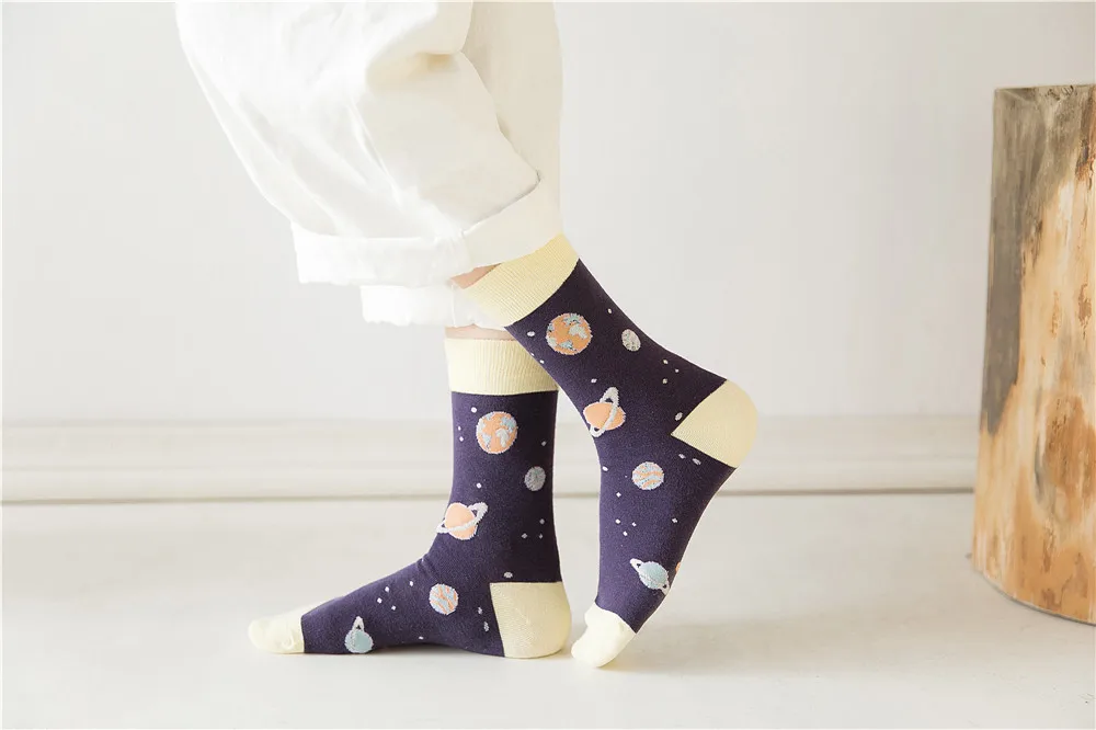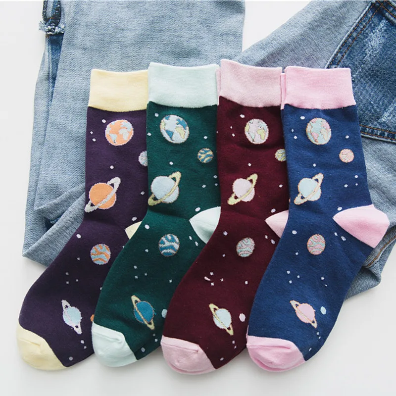 Повседневные хлопковые носки в стиле Харадзюку С героями мультфильмов космическая планета; Повседневные уличные носки в стиле хип-хоп; Сезон осень-зима
