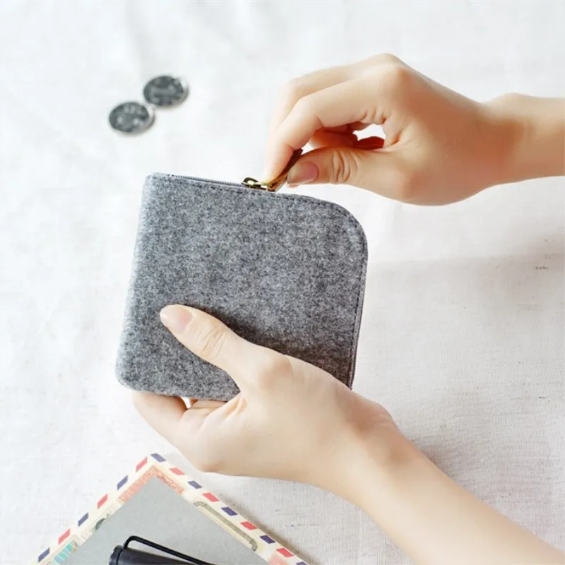 Изготовлен из войлочного материала, простой и благородный стиль, упаковка для карт, сумка для ключей, кошелек для монет, несколько стилей, дизайн на молнии, модный