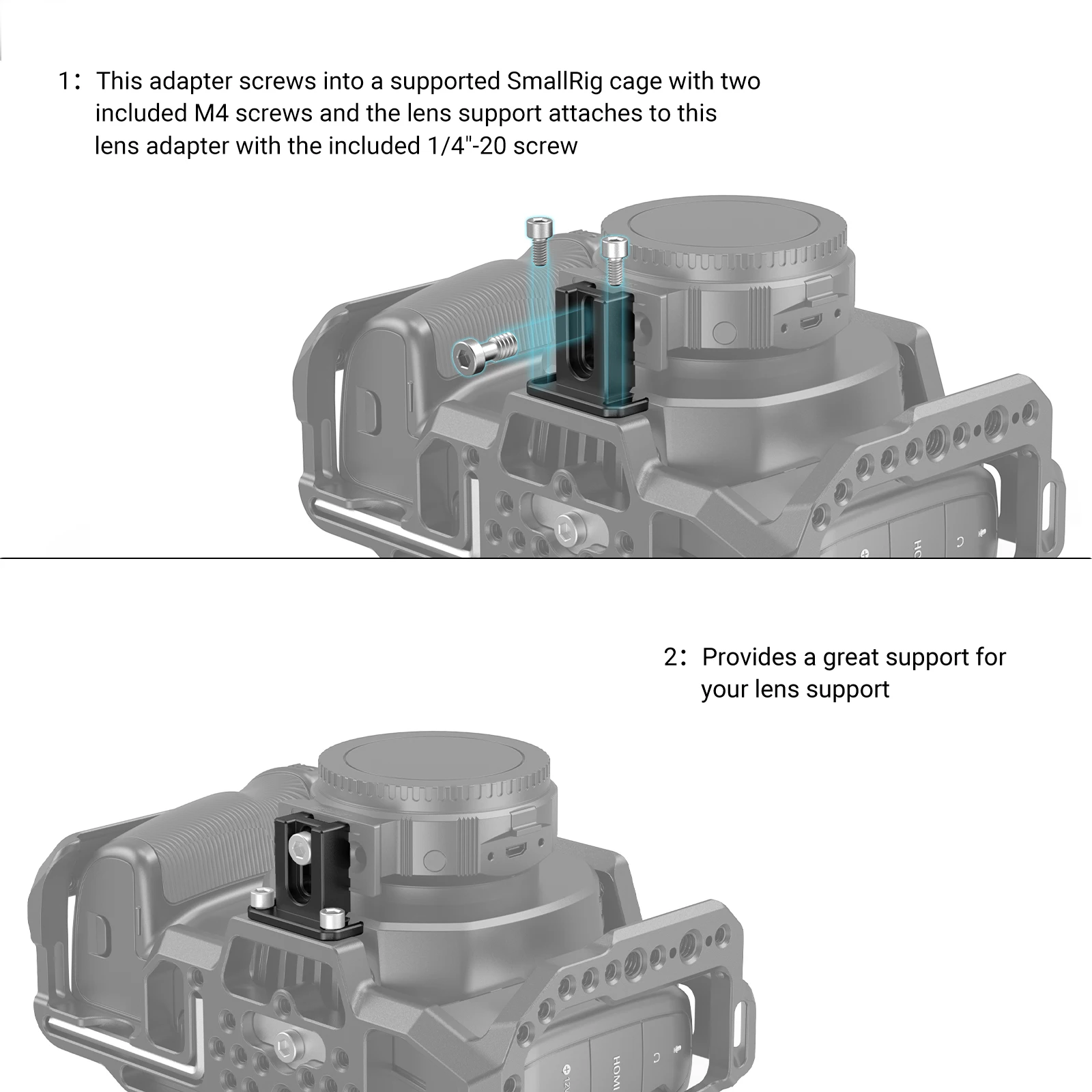 Адаптер для крепления объектива SmallRig для BMPCC 4K 2247 предназначен для работы с клеткой SmallRig BMPCC 2203, 2254 и 2255. Он крепится к клетке двумя винтами M4 и блокирует адаптер объектива одним винтом 1/4. Он поддерживает адаптер объектива, облегчающее давление от тяжелых линз и предотвращает потерю сигнала.