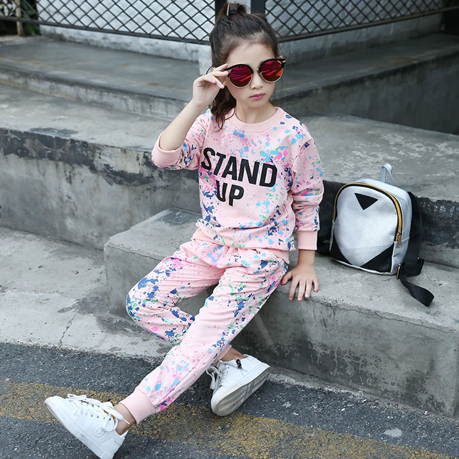 Свитшот и брюки для девочек, 2 шт., костюмы для девочек, рождественский подарок, зимняя одежда для девочек 4, 6, 8, 14 лет