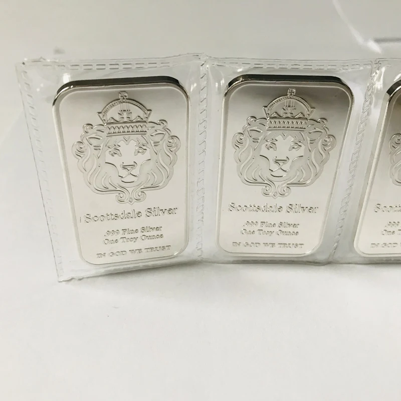 50 шт., немагнитные монеты Scottsdale, 1 унция, посеребренный значок слиток, коллекционная вакуумная герметичная упаковка, украшение, Подарочная балка