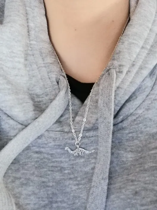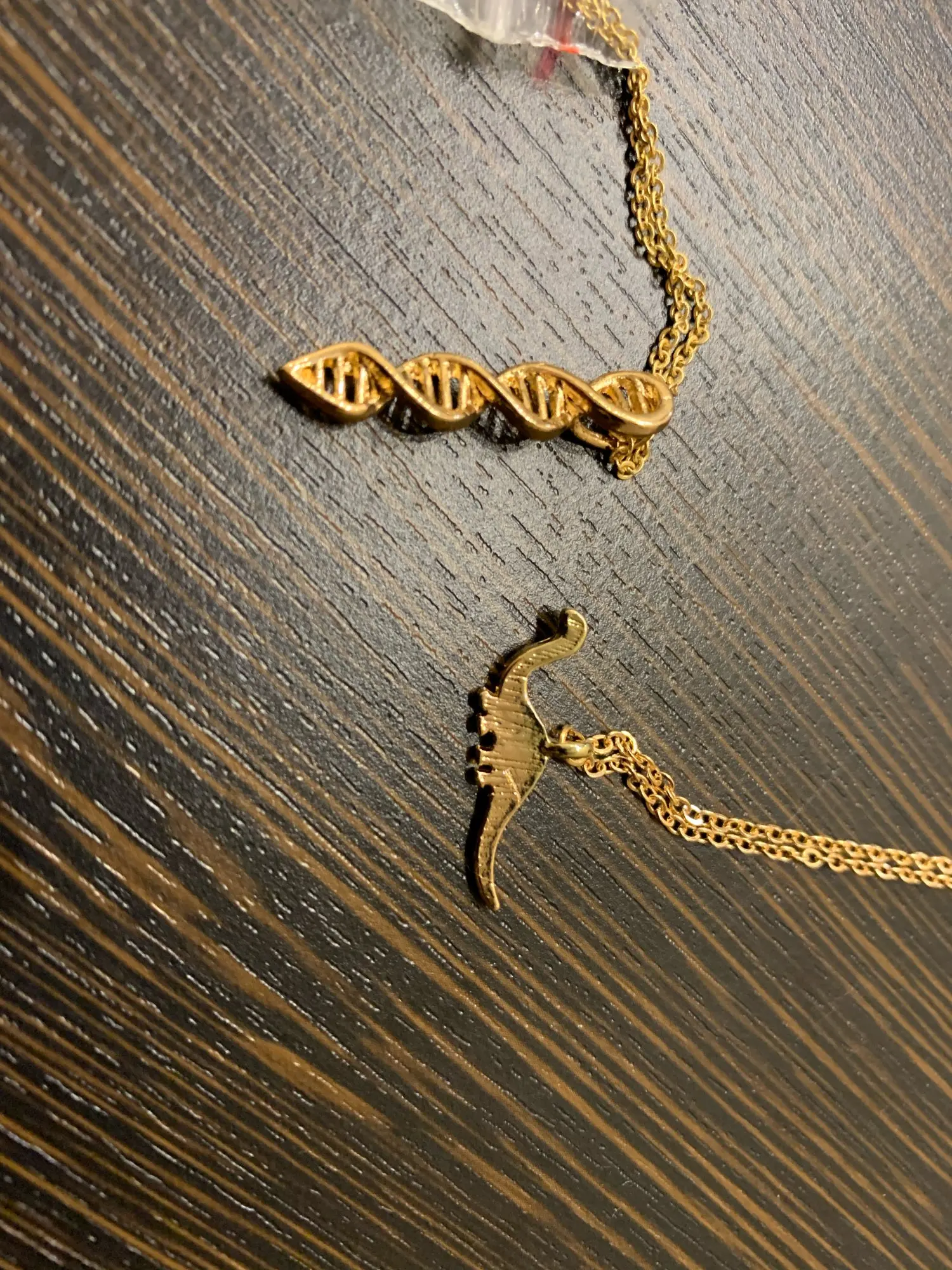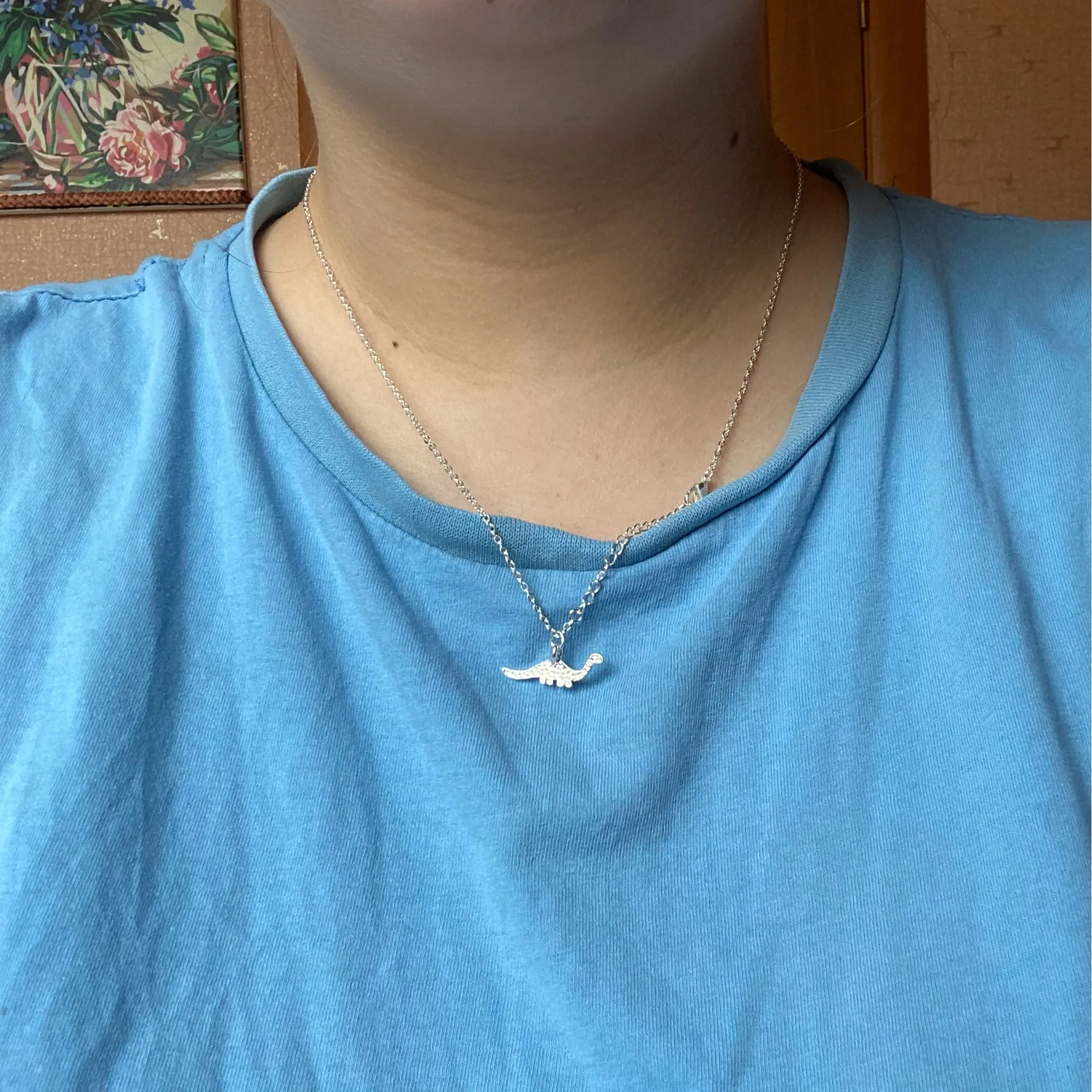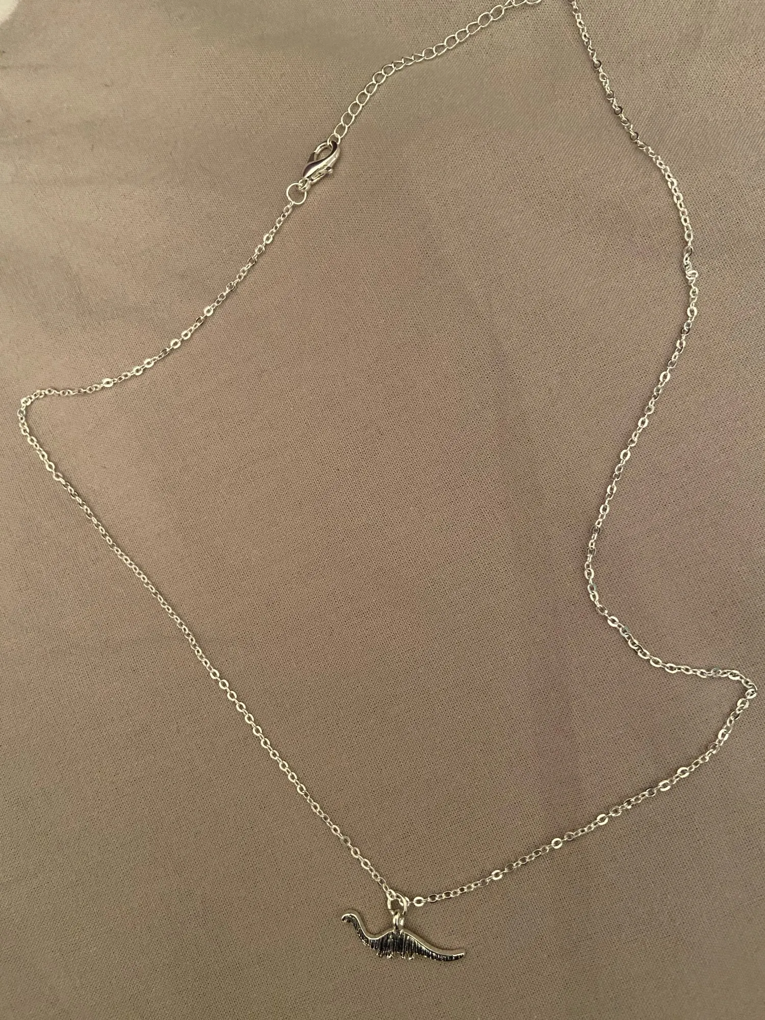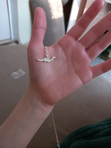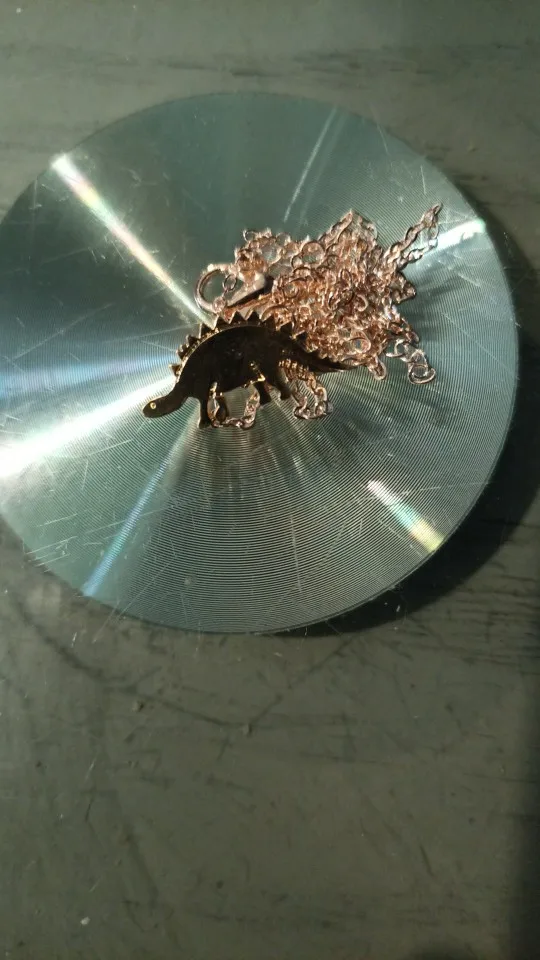 Цепочка тонкая, всё красиво, аккуратно, но позолота (?) на динозавре вся вздутая