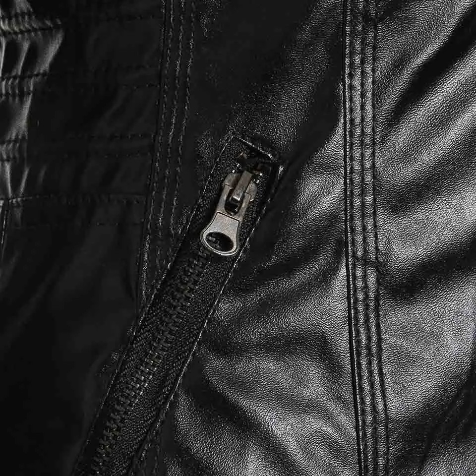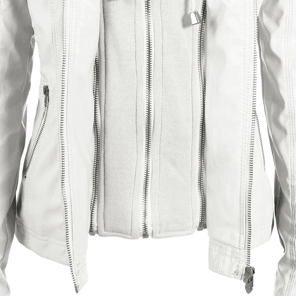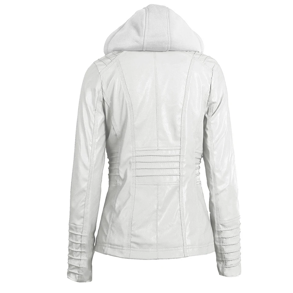 Куртка женская из искусственной кожи с капюшоном и съемным воротник...