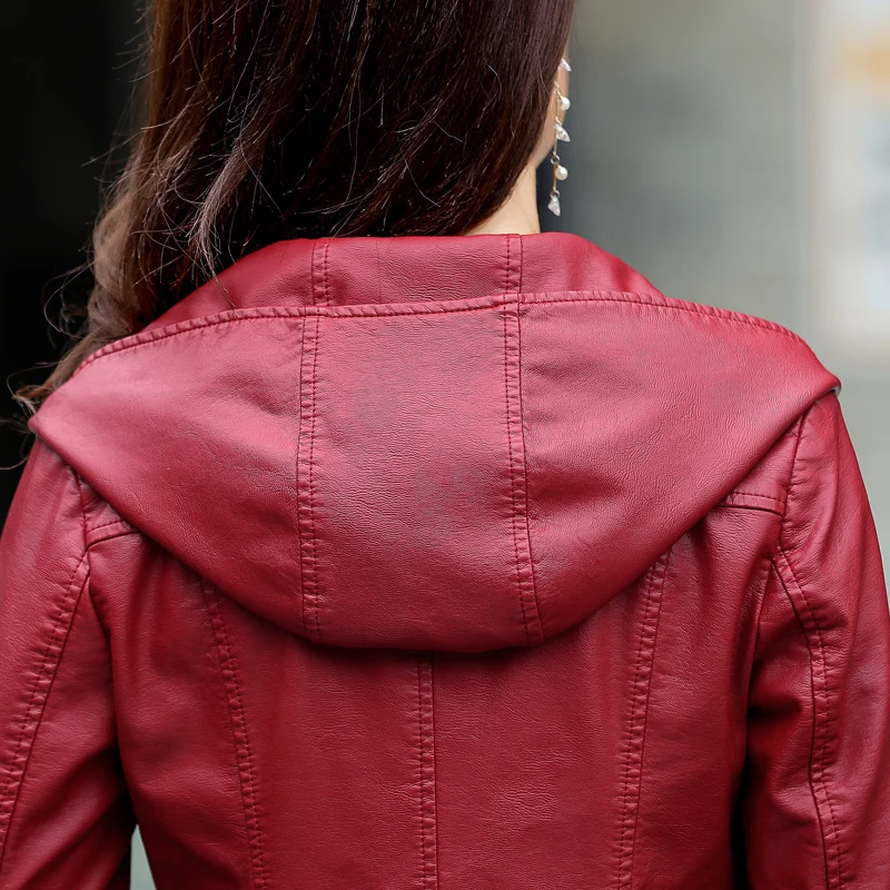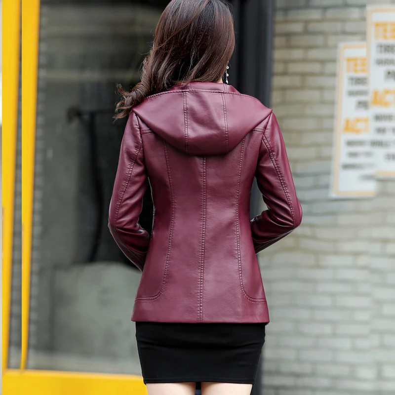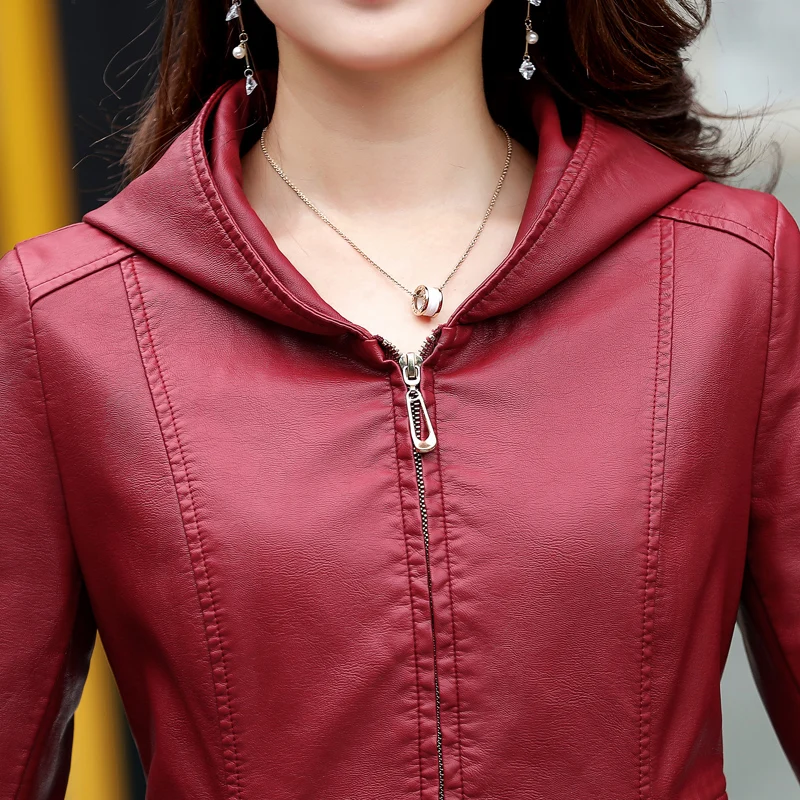 Новинка, женские элегантные кожаные куртки с капюшоном, женское тонкое пальто из мягкой овечьей кожи, L-6XL женская верхняя одежда из искусственной кожи