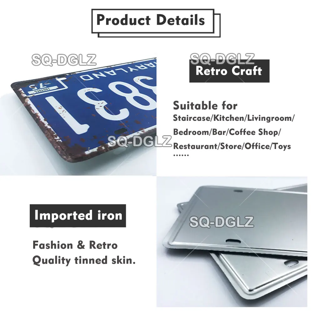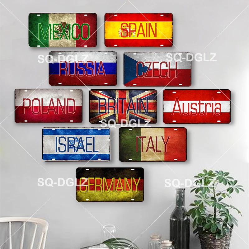 SQ-DGLZ флаг страны + номерной знак, украшение для стен, жестяной знак, винтажный металлический знак, домашний декор, постер