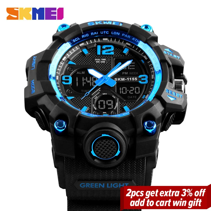 SKMEI Марка Для мужчин спортивные часы Военные Водонепроницаемый Аналоговый Цифровой светодио дный электронный Кварцевые наручные часы Relogio Masculino Новый 1155