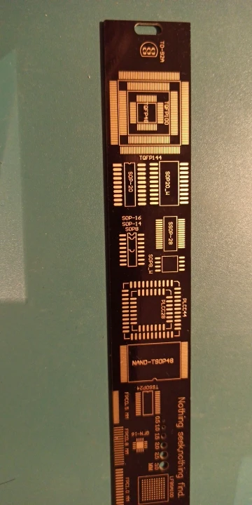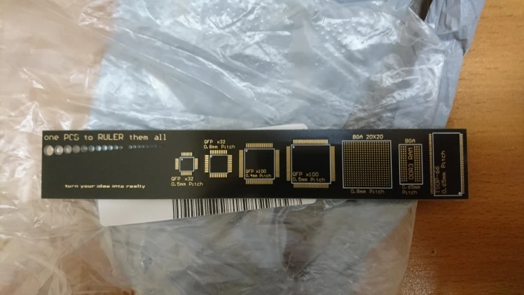 общения с продавцом не было, линейка сделанная из фольгированного текстолита, черная маска, толщина 1.5 мм