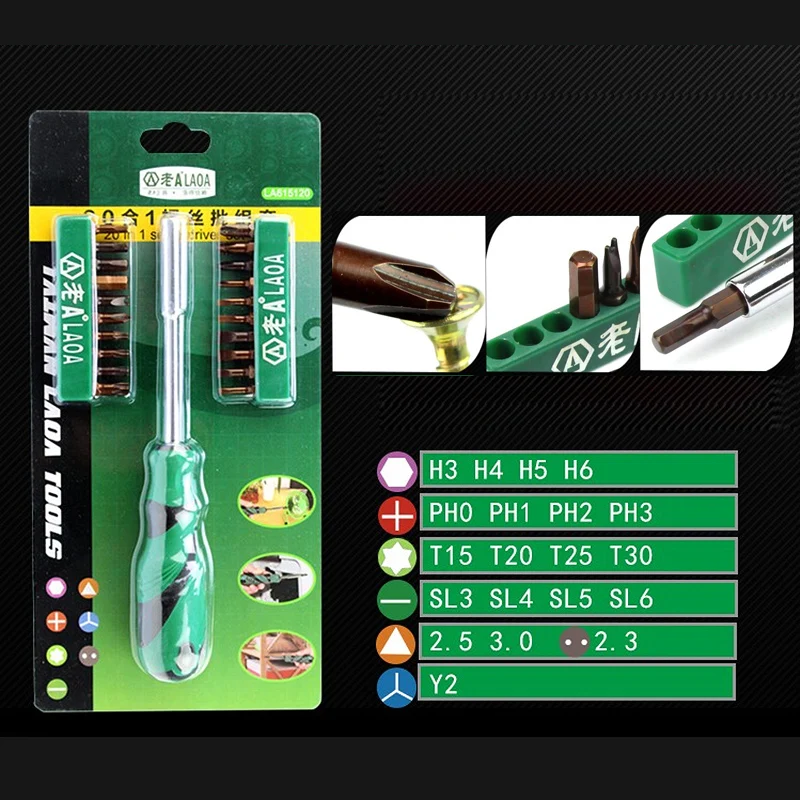 Набор отверток LAOA 20 в 1 S2, комплект с шестигранным шлицевым крестообразным шестигранным треугольным и y-образным наконечником, ручной инструмент
