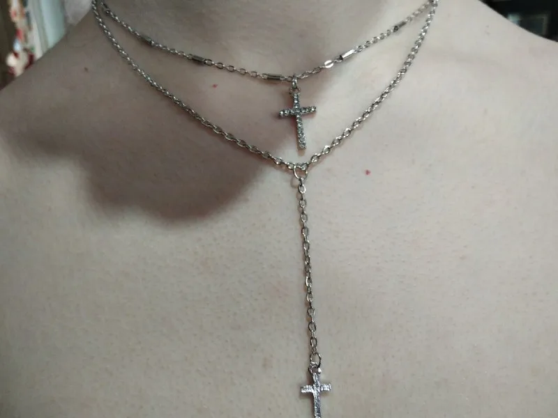 Модное Золотистое Ожерелье с кристаллами, крест, подвески, Двухслой...