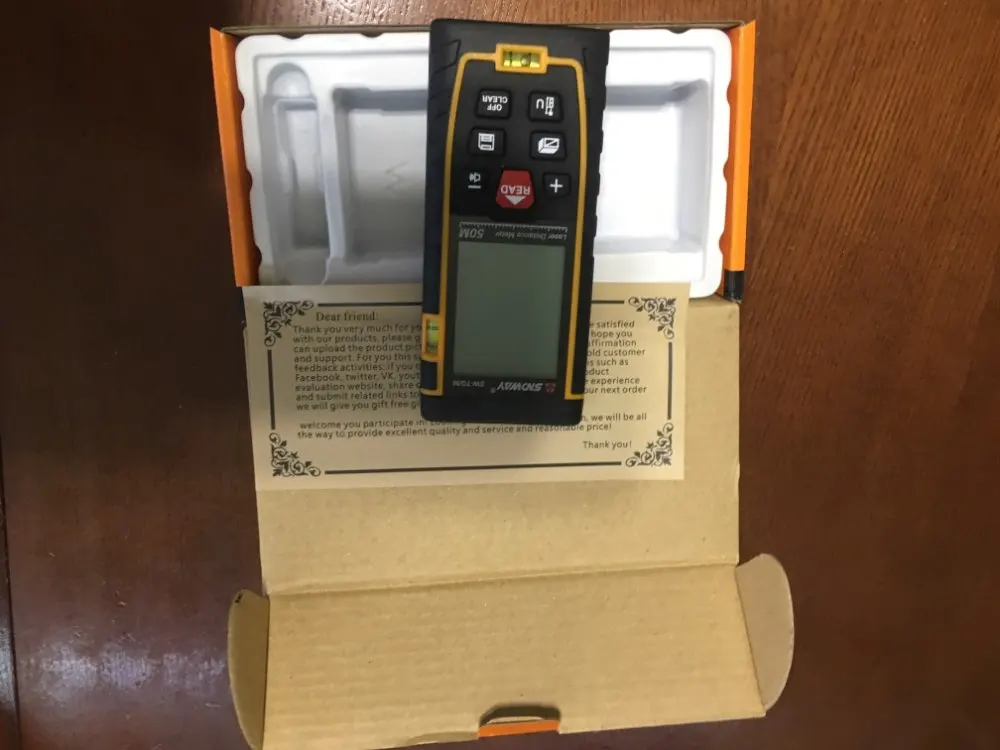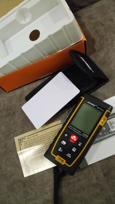 Ещё не включая стало ясно, что дальномер качественный. Хороший корпус с прорезиненный вставками. Упаковка заводская качественная. В руке удобно. Экран хорошо подсвечивается. При работе не обнаружено недостатков. На большое расстояние не тестировал пока. Метка яркая. Думаю, с красными очками от лазерного уровня и вдалеке будет видно. Доставлено в Вологодскую область iml за 5 дней с момента оплаты. Спасибо за отличный товар! Рекомендую однозначно.