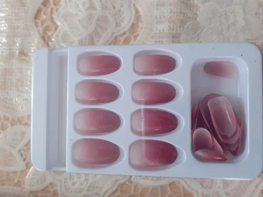 На мой вкус они очень тонкие, но они идентичны фотографии, она поставляется с некоторыми наклейками, чтобы положить ногти палку, чтобы удалить кутикулу, и файл предпочел бы тысячу раз, чтобы они оставили сопротивление, но это происходит вакуум в той части, где он должен прийти