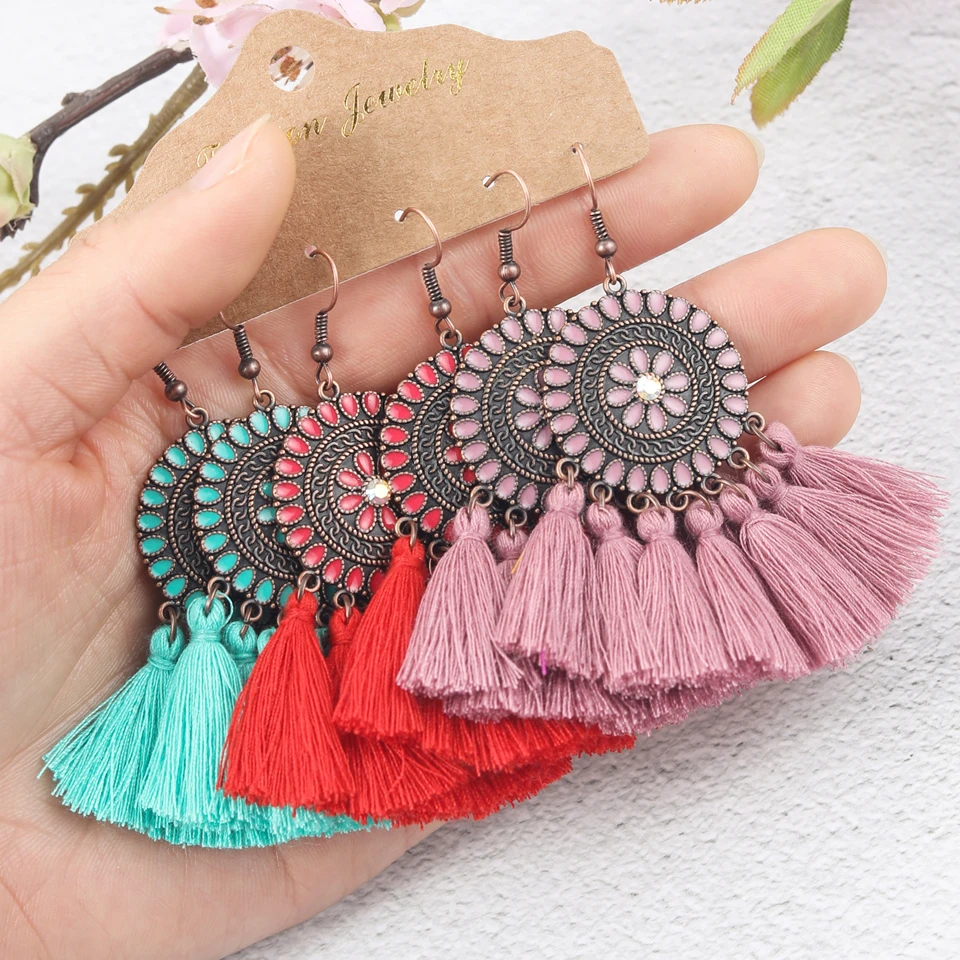 Несколько цветов этнические висячие серьги с кисточками в стиле бох...