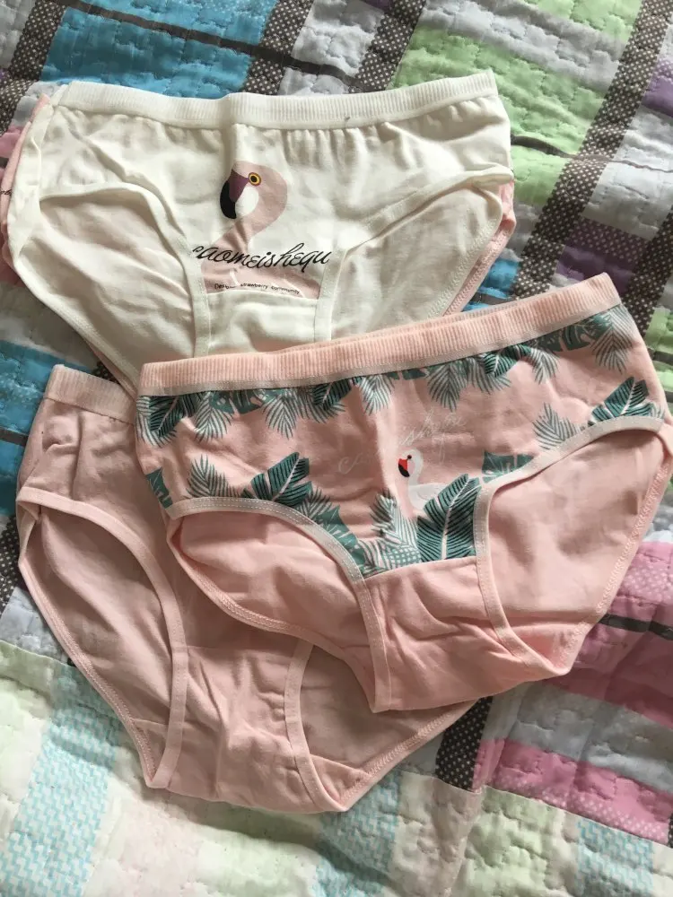 Трусики для девочек-подростков 3 шт., удобное хлопковое нижнее белье с фламинго, трусики B807