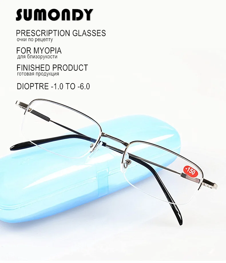 Мужские очки для близорукости SPH -1-1,5-2-2,5-3-3,5-4-4,5-5-5,5-6, полуоправы из сплава, очки для близорукости Diopter UF24