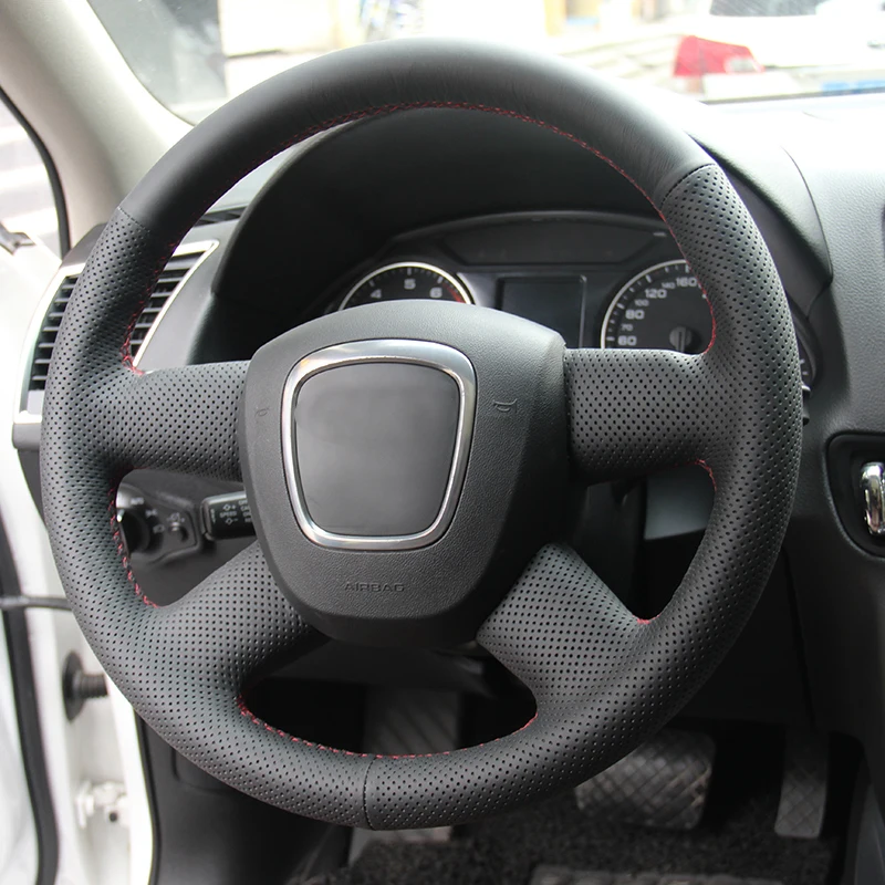 Сделай сам из искусственной кожи черная чехол рулевого колеса автомобиля для Audi старый A4 A6 B7 B8 C6 2004 2005 2006-2011 Q5 2008-2012 Q7 2005-2011