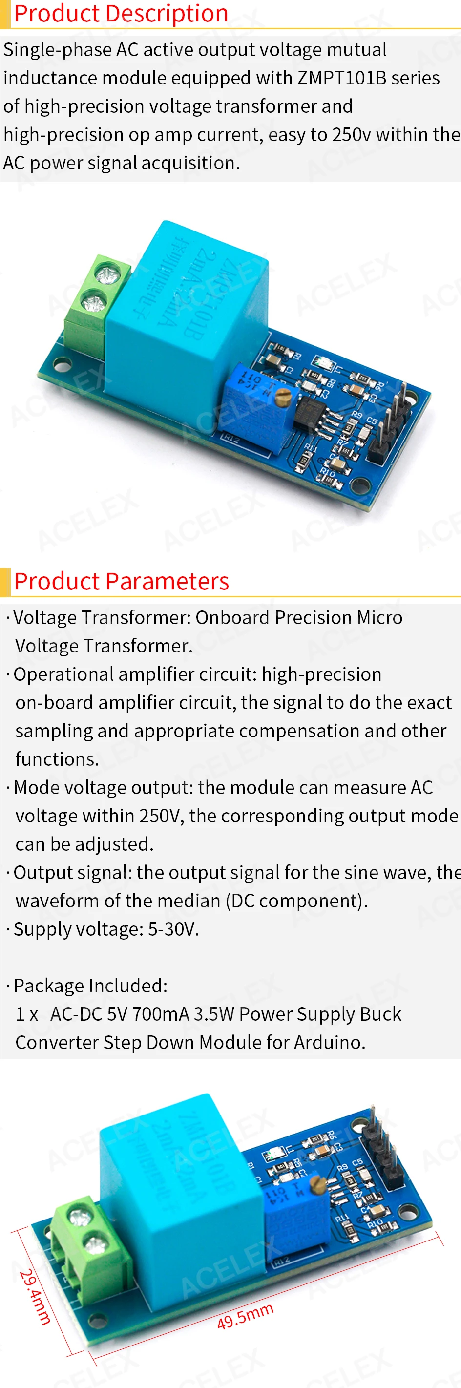 Модуль активного однофазного трансформатора напряжения, переменного тока, датчик выходного напряжения, датчик взаимной индуктивности, усилитель для Arduino Mega ZMPT101B