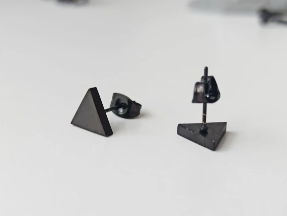 Серьги норм за свою цену. Все как на фото продавца. Покрыты чёрной глянцевой краской. Есть подозрение, что краска со временем будет облезать, есть пара браков в покраске. Все с металлическими стопперами, которые советую сразу заменить на силиконовые, потому что царапают покрытие сережек. Доставка полтора месяца, трек частично отслеживался.