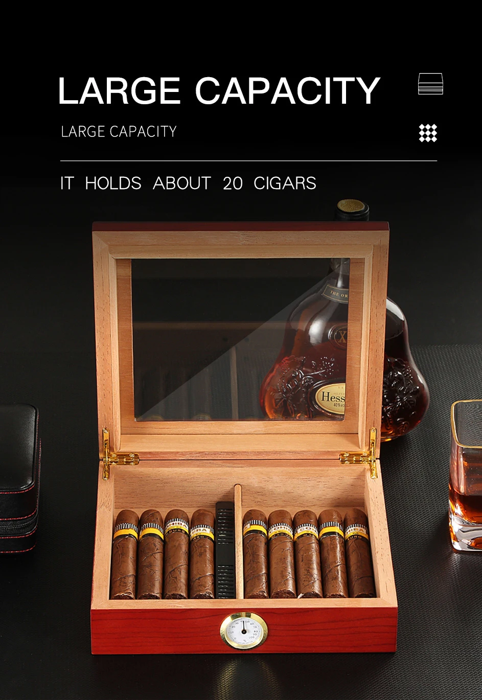 Меньше ожидаемого. Всего 15 сигар (Cohiba Behike 56). Тем не менее хорошая отделка и гигрометр работают должным образом. Очень быстрая доставка и упаковка хорошо защищены