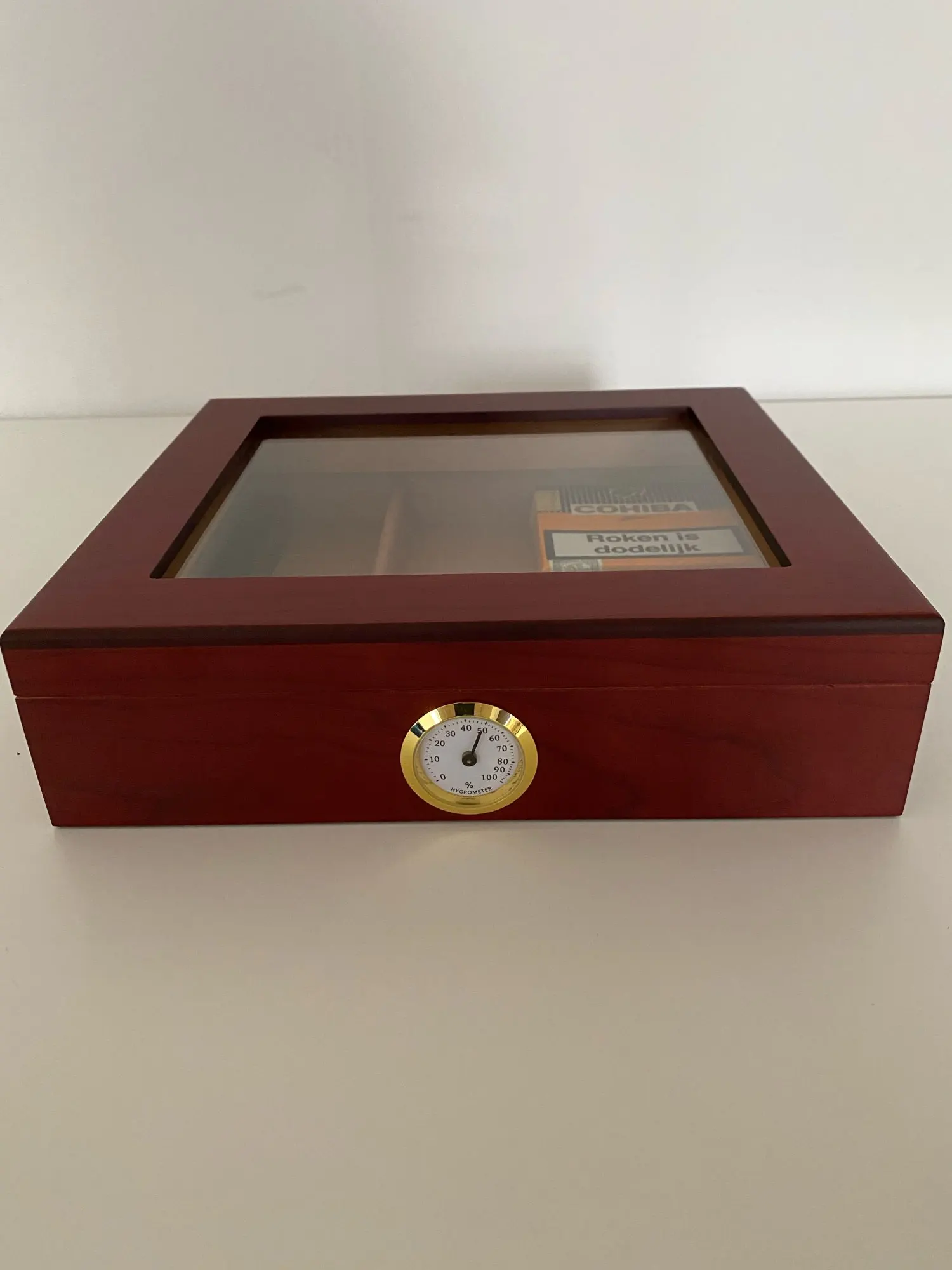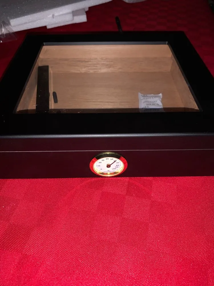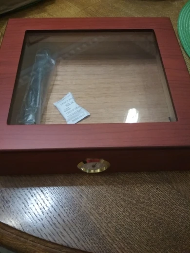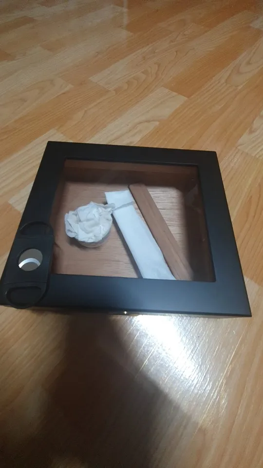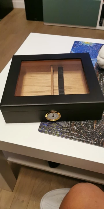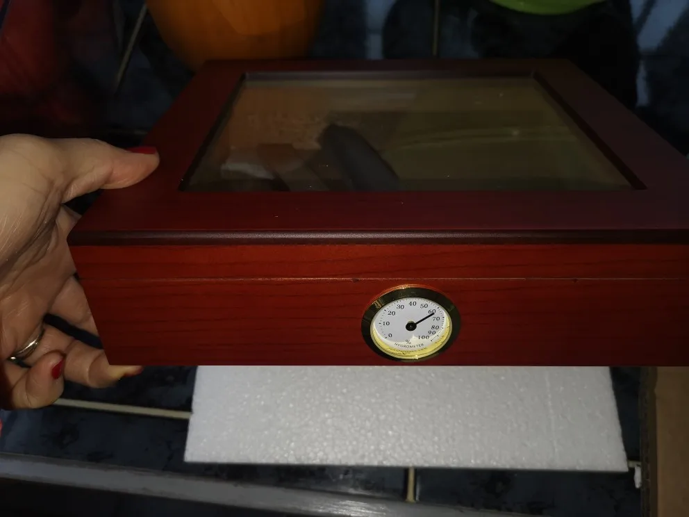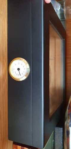 Быстрая доставка. Юмидор выглядит очень мило. Гигрометр, как обычно, удаляется, поэтому я рекомендую дешевый круглый цифровой для продажи здесь.