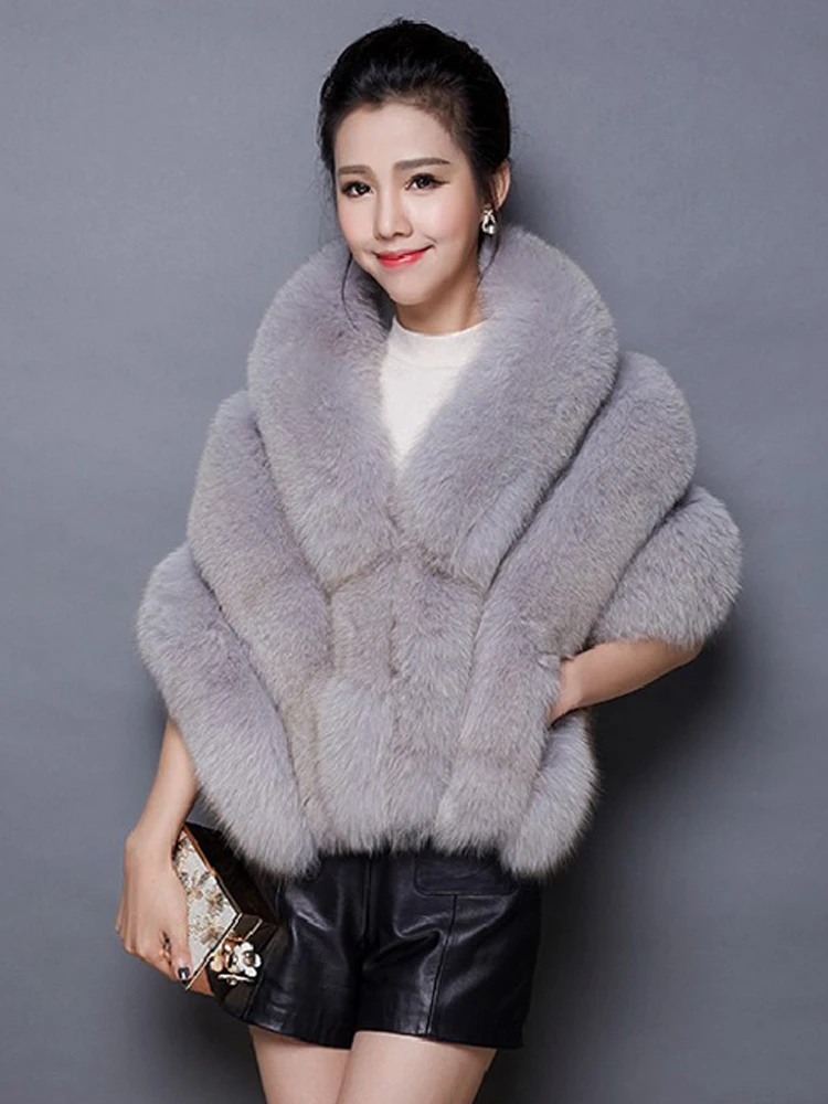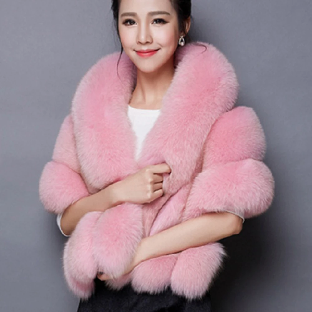 Зимние шарфы женская искусственная меховая шаль куртки для женщин плащ с карманом белая, розовая, серая женская зимняя куртка