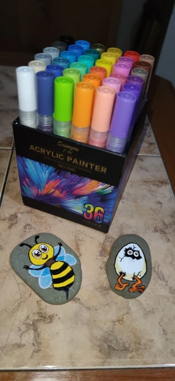 Я получил здесь раньше, чем ожидалось, идеально завернутый. Идеально подходит для покраски камней, что было именно то, что мы хотели. Настоятельно рекомендуется.