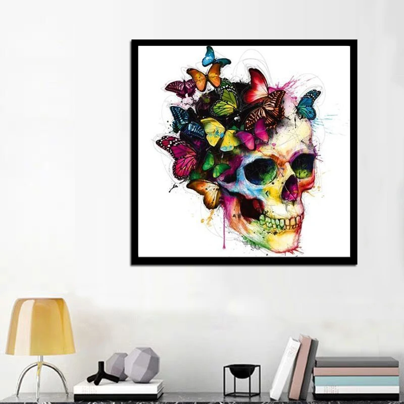 Алмазная вышивка 5D "сделай сам", вышивка крестом, Череп, алмазная живопись, Бабочка, Алмазная мозаика, узор, стразы XY1