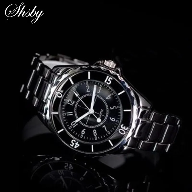 Женские кварцевые часы Shsby, классические часы из нержавеющей стали с черной краской