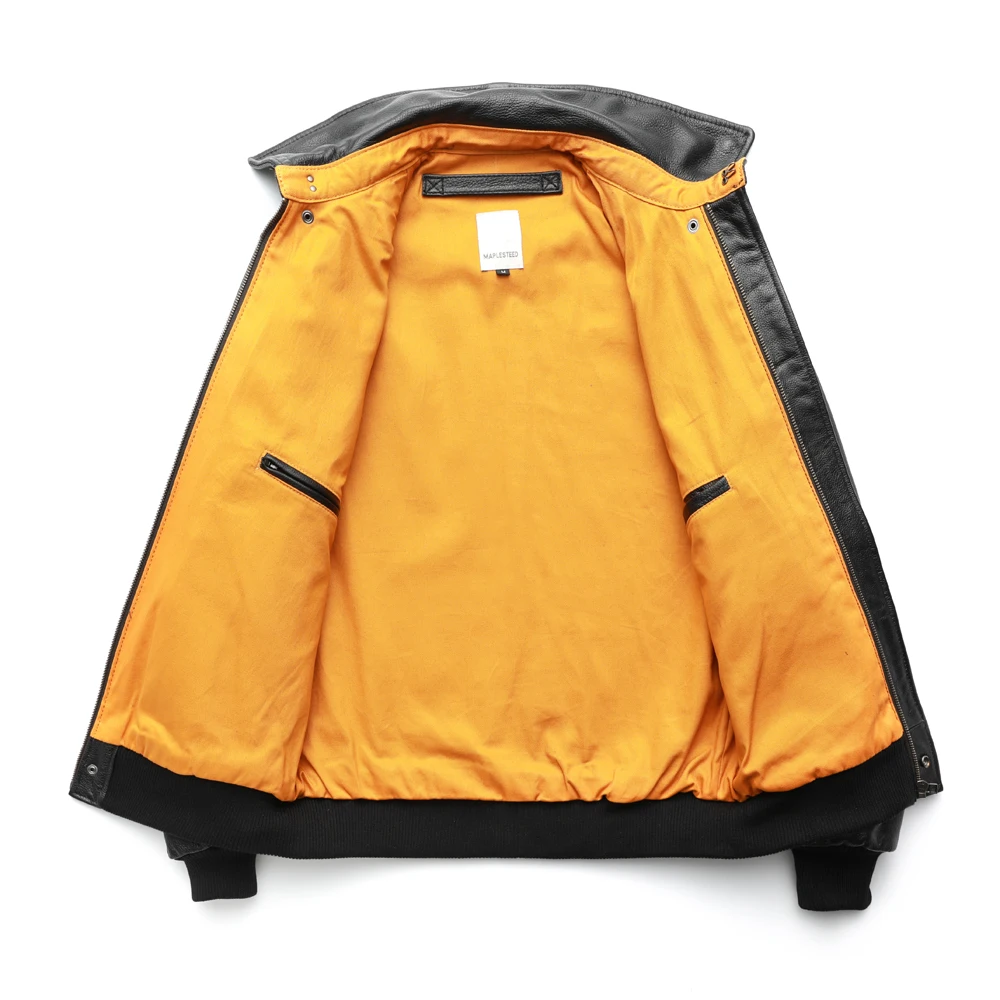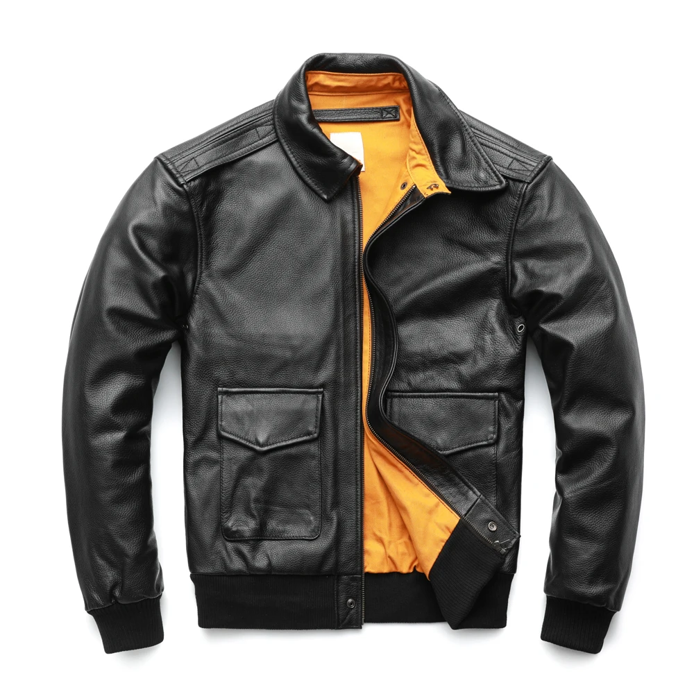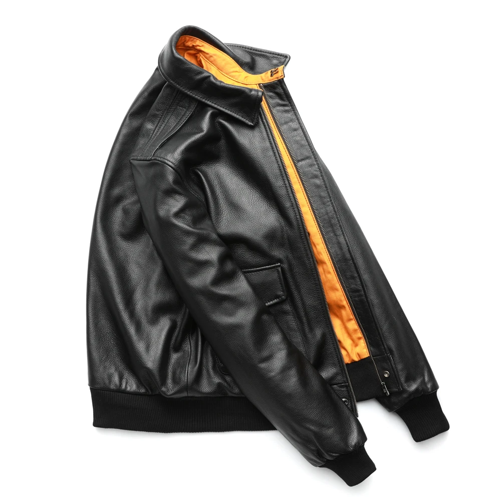 Куртка-пилот Мужская из телячьей шкуры, куртка черная, коричневая, 100%