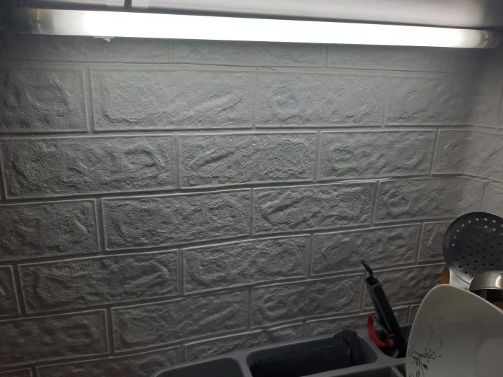 Недавно покупала аналогичные панели в другом интернет-магазине (которые стоят в 3 раза дороже), поэтому есть, с чем сравнить. Эти более дешевые, однако и более тонкие и приклеивать их не так удобно, как более дорогой аналог. Маленькие частицы клея остаются потом на руках, на одежде, на той поверхности, рядом с которой панели клеили. Так что перед тем, как обклеивать, например, кухонный фартук, нужно накрыть стол, раковину и всё-всё, что рядом, иначе придется потом клей со всего этого вычищать, а он так просто не отдирается. И руки приходится мыть по многу раз. При работе с более дорогими панелями такого не было. Хотя по степени приклеивания всё одинаково. К кафельной плитке, к примеру, крепится намертво: если что-то сделал не так, и надо исправить, отдирать придется по кускам.. и соответственно отрезать новый кусок. Но на обои лучше не клеить: панели отходят.. Не смотря на то, что эти недорогие панели тонкие, тем не менее, они не просвечиваются. Это плюс. В целом неплохие за свою цену.