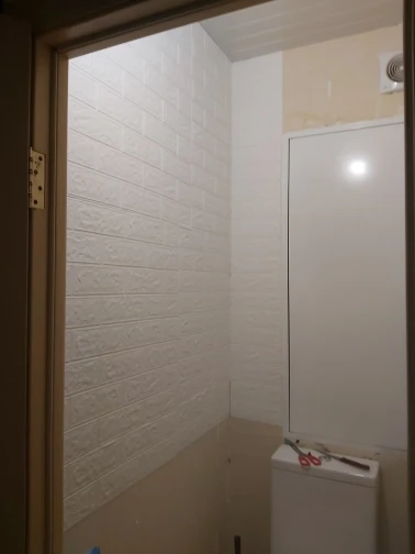 посылка пришла в идеальном состоянии, ни один уголок не помят. при получении на квитанции обратила внимание что вес посылки 1,16 кг. мало показалось, но на деле 12 шт 70'77 см весят килограмм)) клеить в одни руки тяжело если углы и "обходные" пути типа вытяжки, лампочки и пр. туалет небольшой у нас, 9этажка, панелька, стандартный туалет, 12 штук не хватило 2 шт. пришлось еще заказать . фото до и после смотрите)) клеила часа 3 в общей сложности, одна без помощи