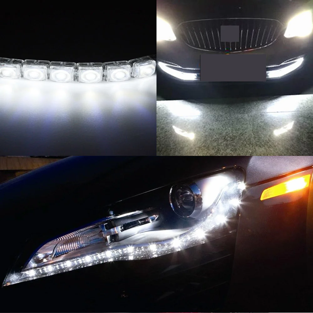 Светодиодная лампа для автомобиля, гибкие силиконовые светодиодные дневные ходовые огни, 6 светодиодный с линзой, 12 в пост. Тока, белая головная лампа для парковочных противотуманных фар