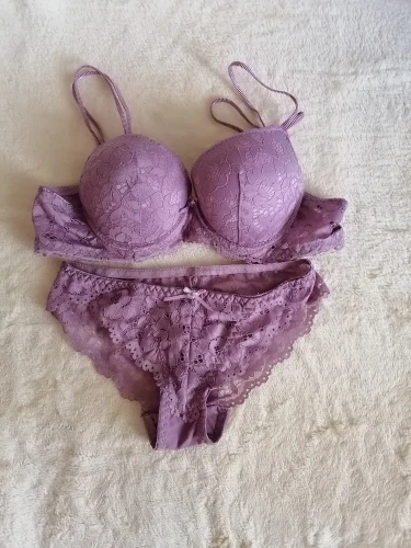 The bra is very nice. It has high quality push up cups and nice adjustable shoulder straps. However, the panties are extra extra small. I would advise the seller to replace it in 2 sizes larger because I can hardly fit. Panties size fits small girls, not slim women