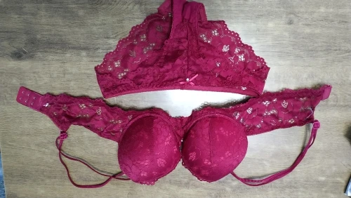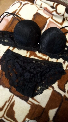 вроде неплохой комплект, трусы тянутся но выглядят конечно маловато с виду, брал на новый год в подарок девушке, носит 46 размер одежды и 85 см объёмом груди, боюсь как бы трусы не были маловаты, спереди на трусах и лифчике бантик с камушком, пуш хороший плотный, она только с пушем и носит, очень надеюсь что трусы не будут малы, доставка около 3-х недель в Украину в Днепр