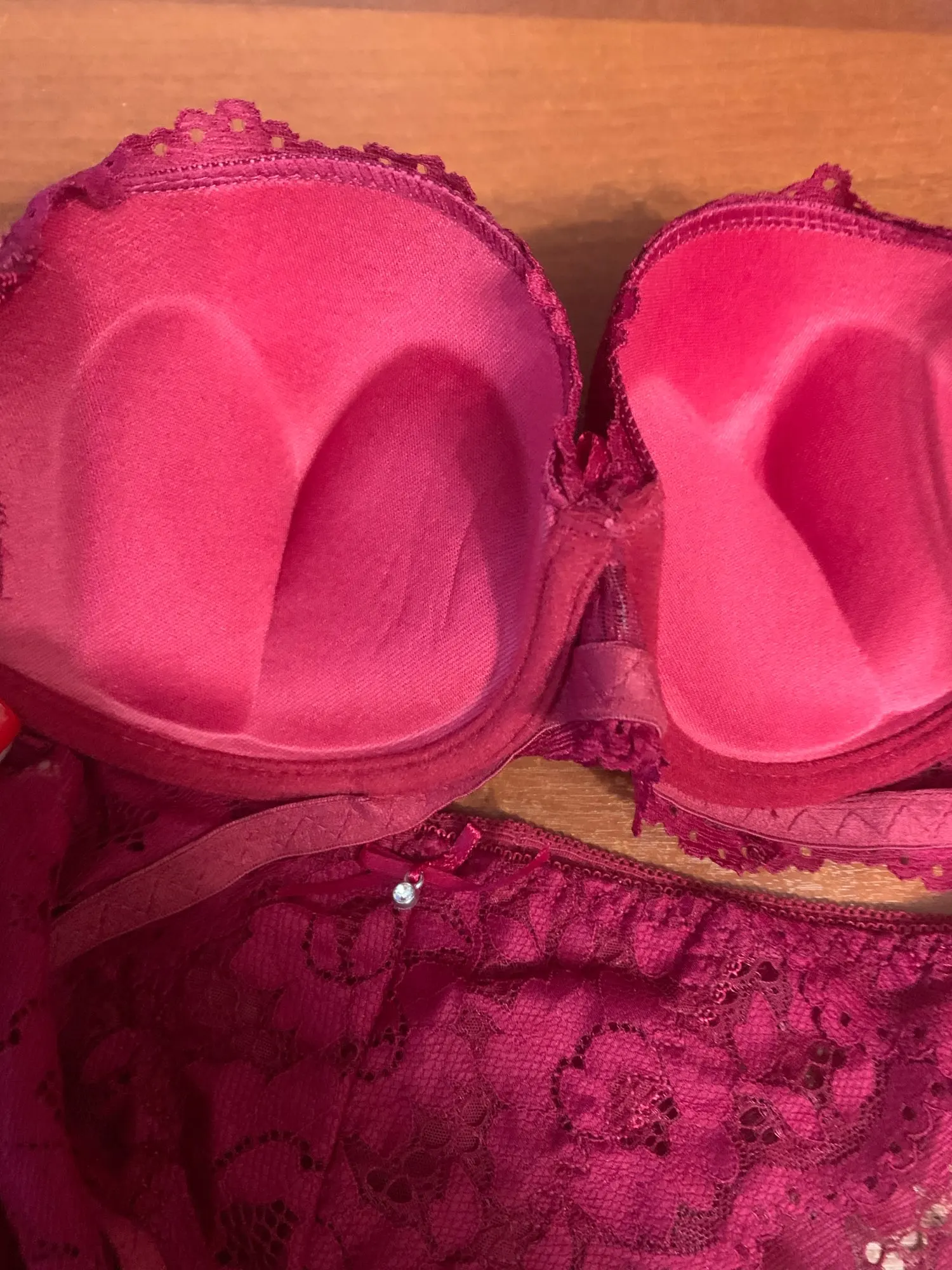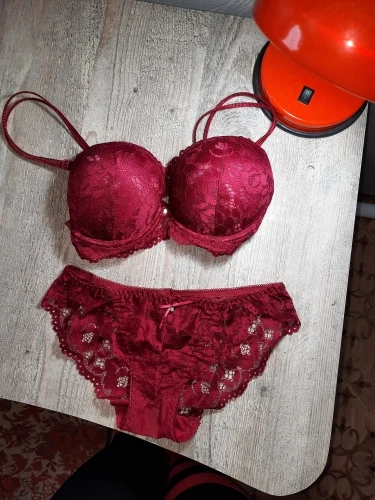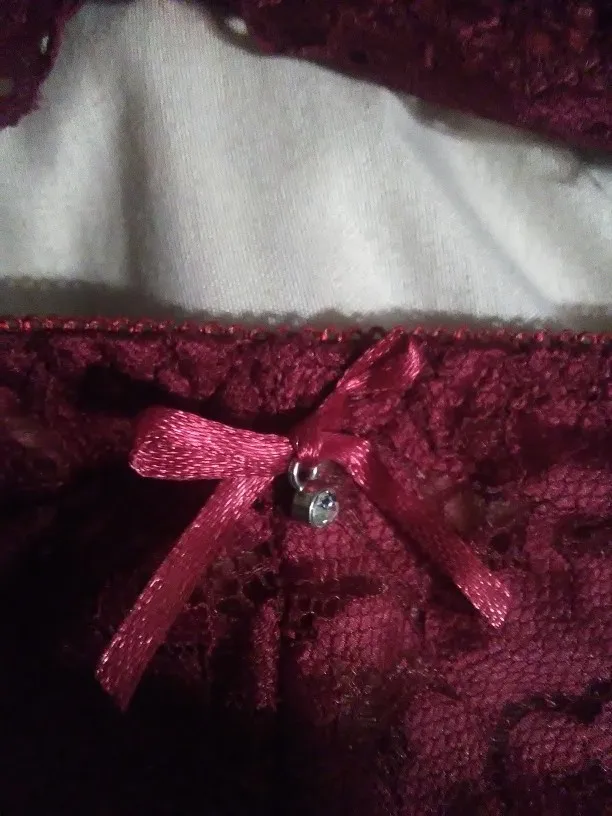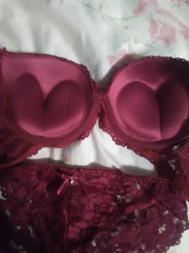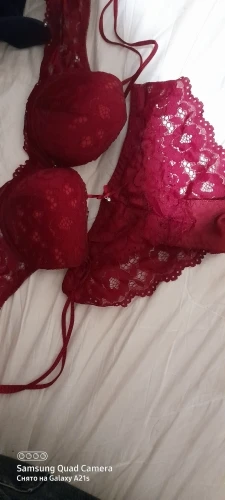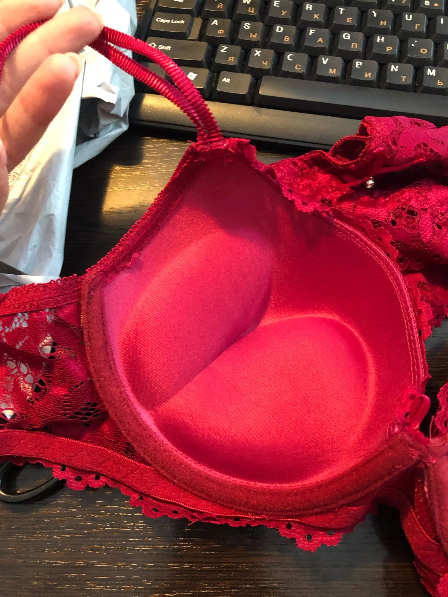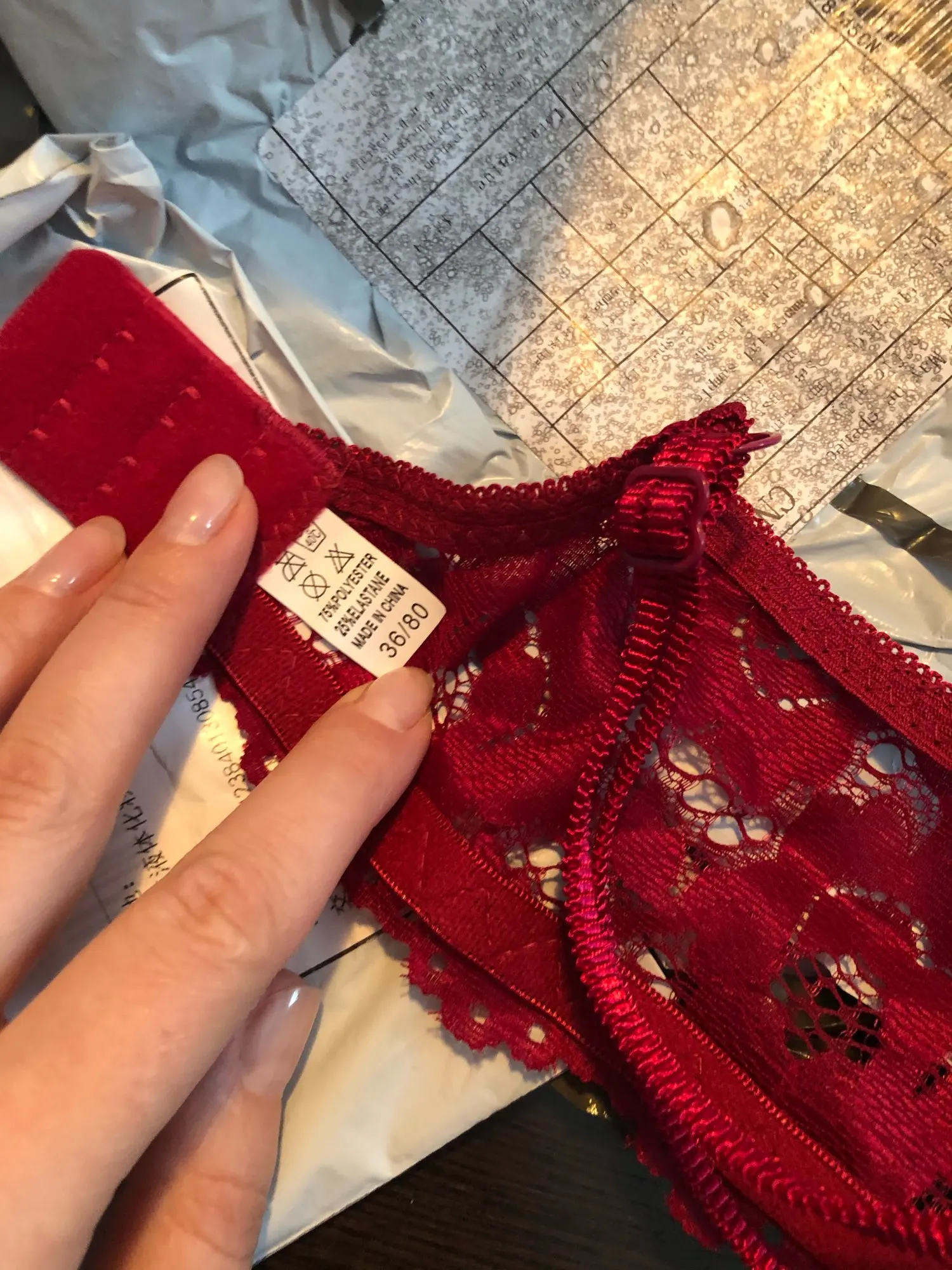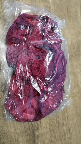 Трусики чуть меньше, но на мою попу налезли, лифак идеален, цвет бордовый шикарен. Ничем не пахнет. Упакован в пакет, нитки не торчат, но бантик на трусиках распущен