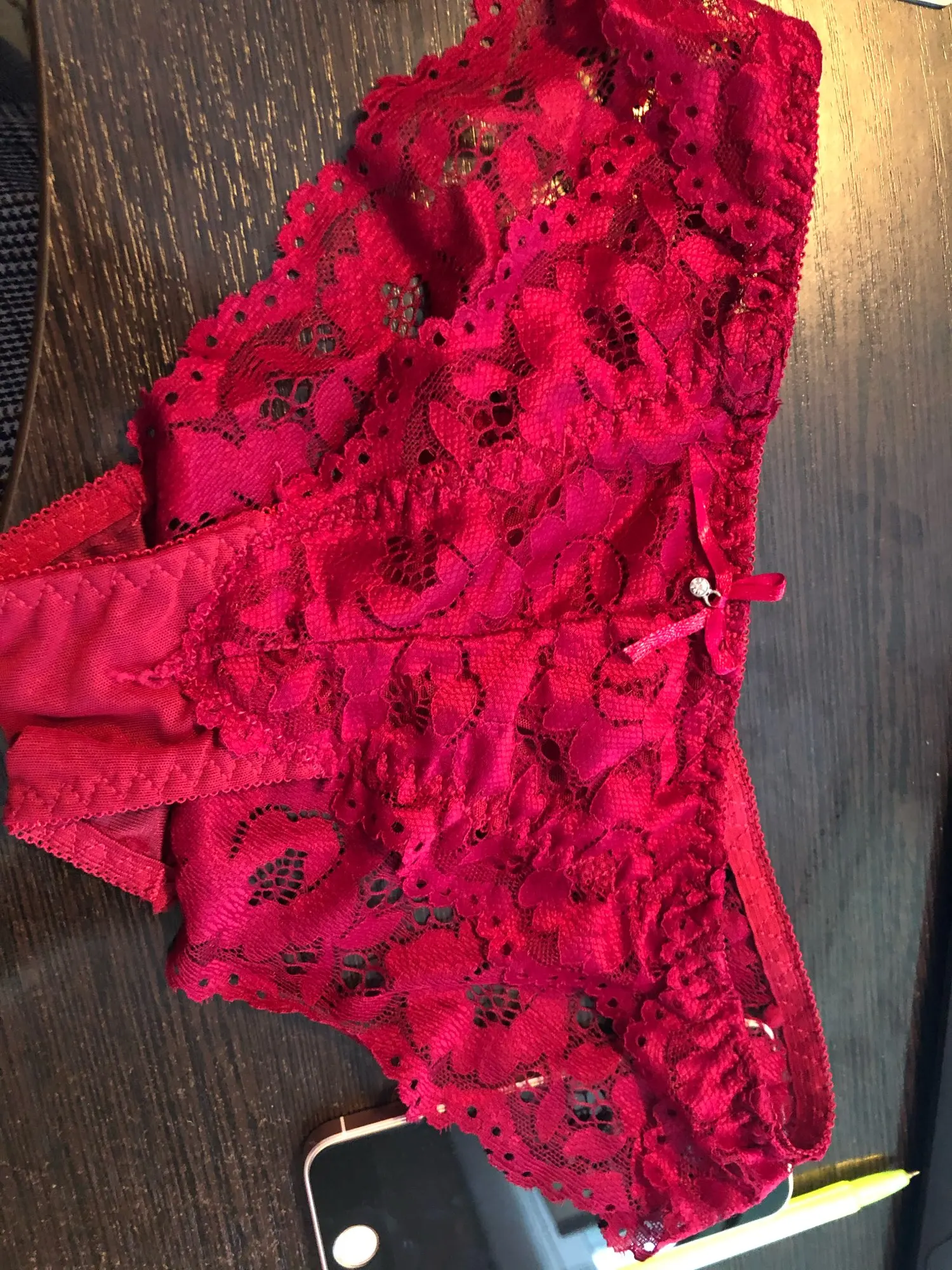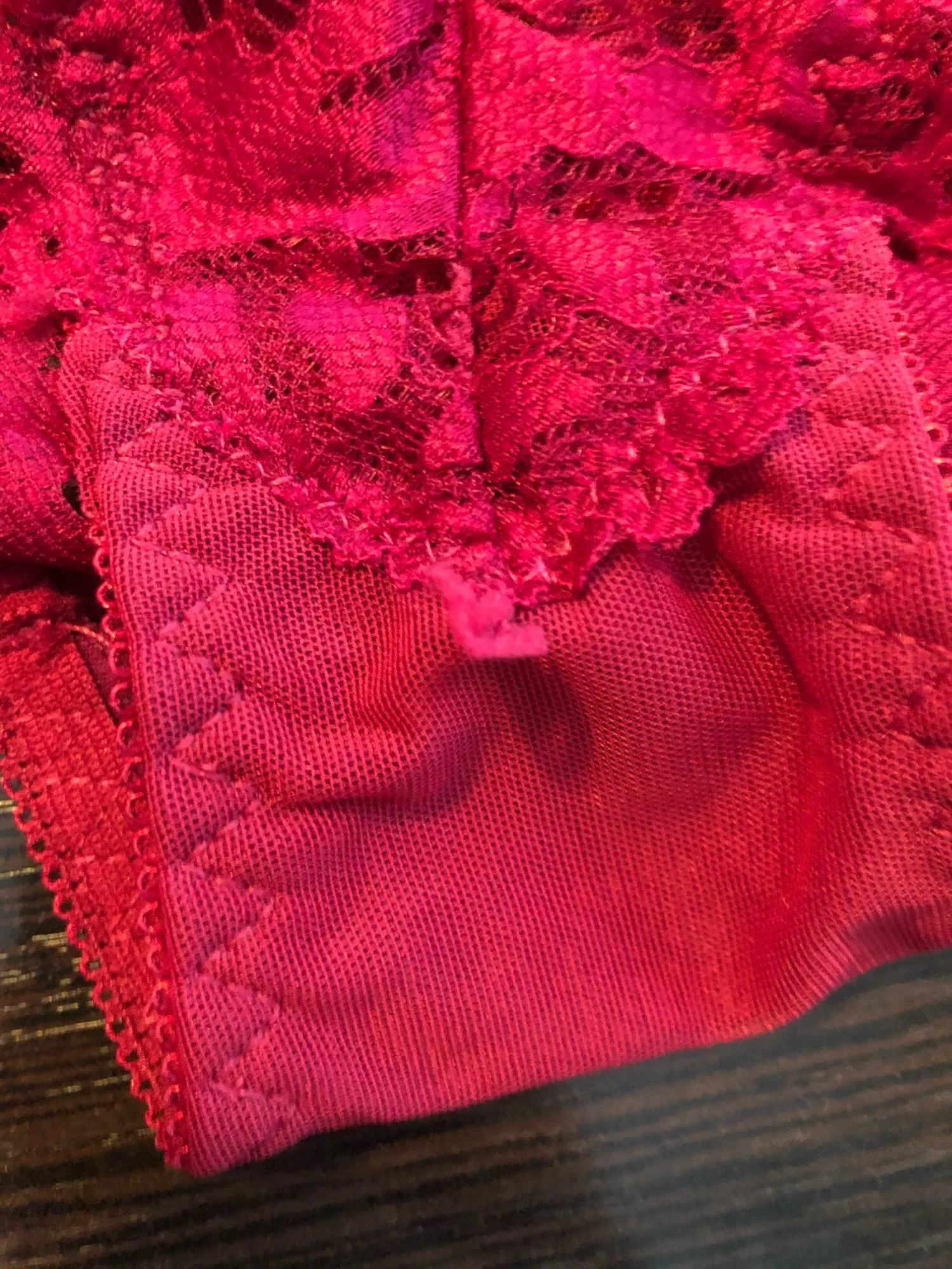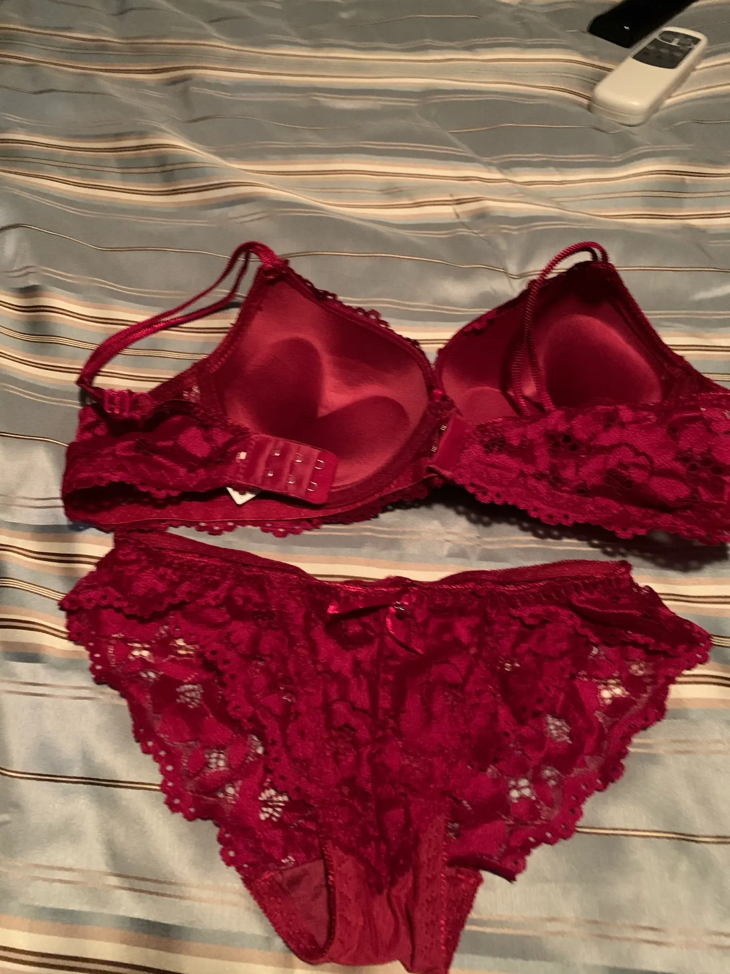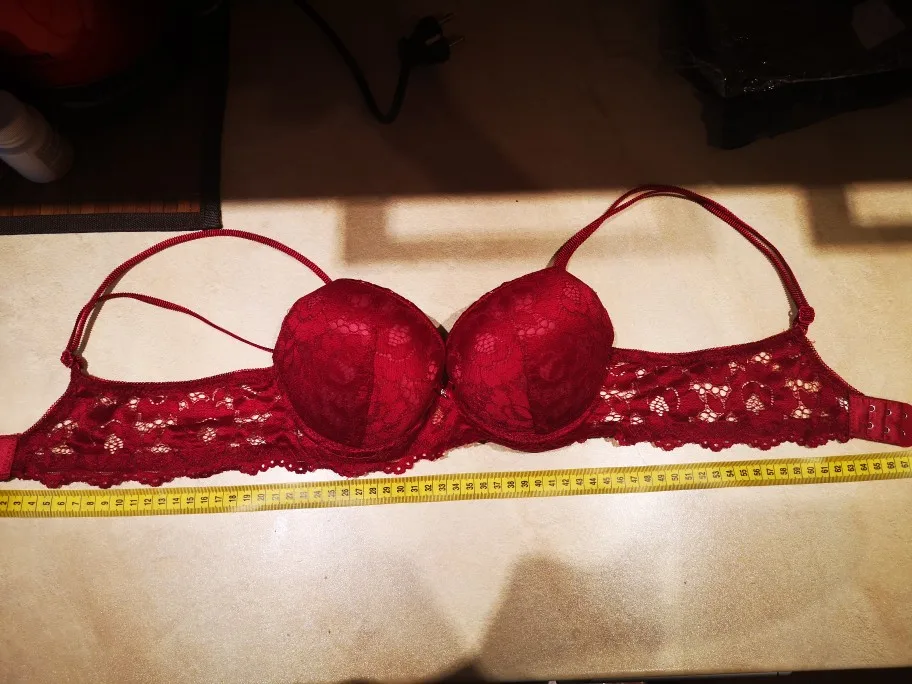 Трусики чуть меньше, но на мою попу налезли, лифак идеален, цвет бордовый шикарен. Ничем не пахнет. Упакован в пакет, нитки не торчат, но бантик на трусиках распущен