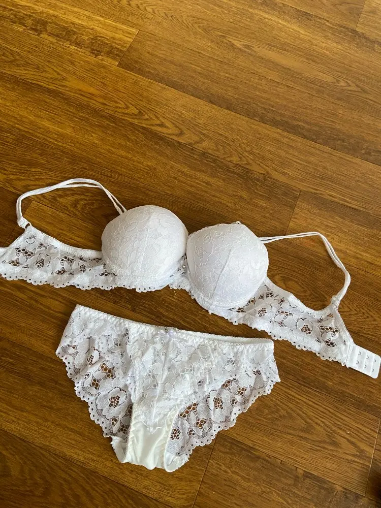 Комплект очень красивый. Но трусики совсем детские. Но сама виновата надо было с продавцом этот момент обговорить. Доставка мегабыстрая-2недели