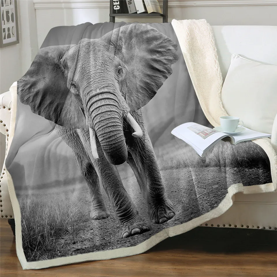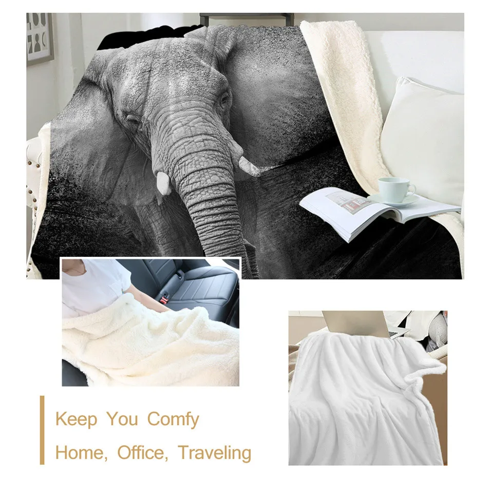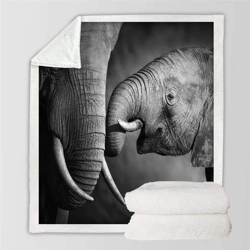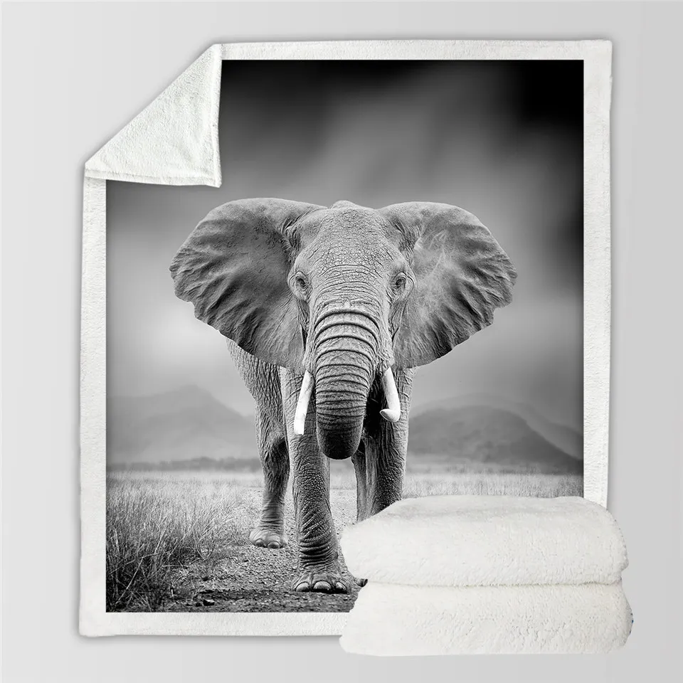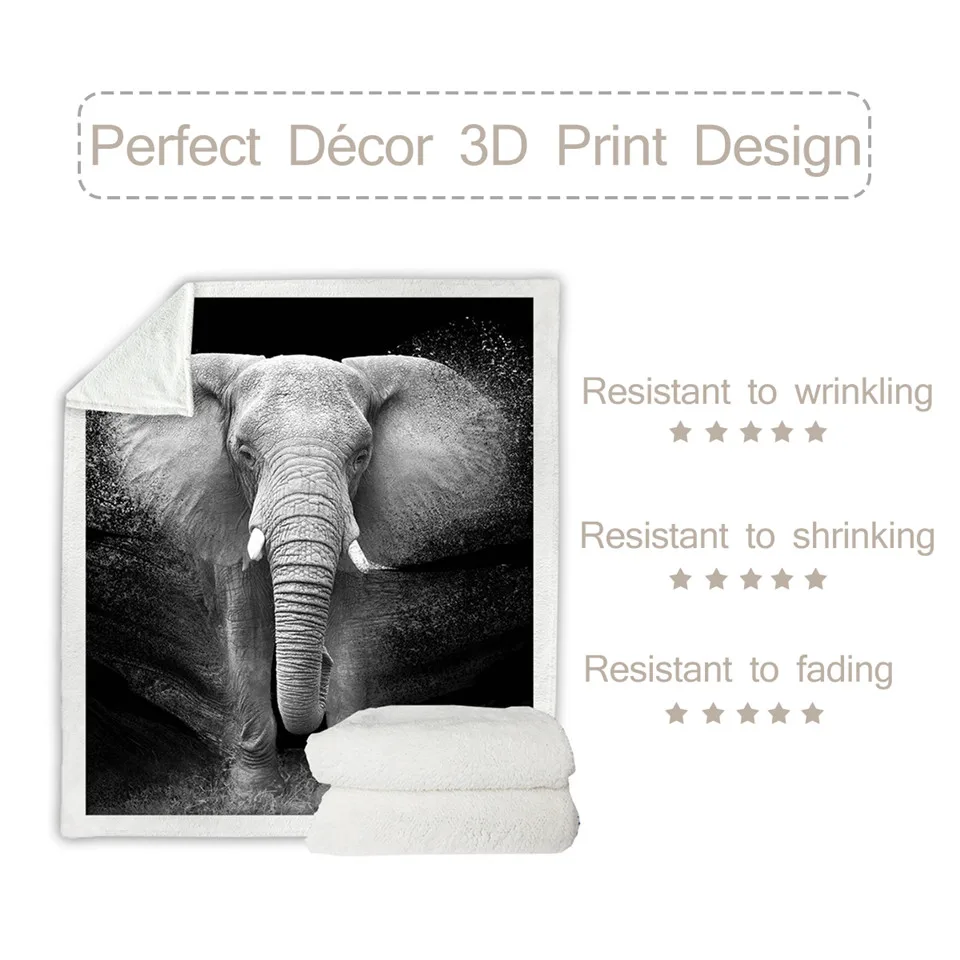 Постельное белье со слоном шерпа, покрывало с 3D-принтом животных, черно-белое плюшевое одеяло для фотосъемки, 150x200 см