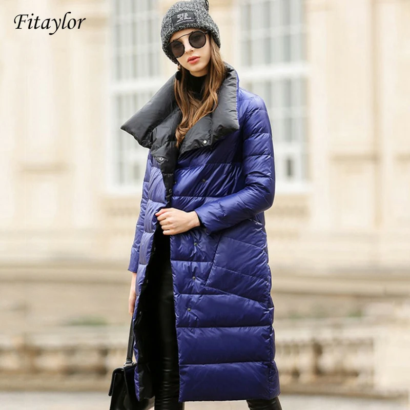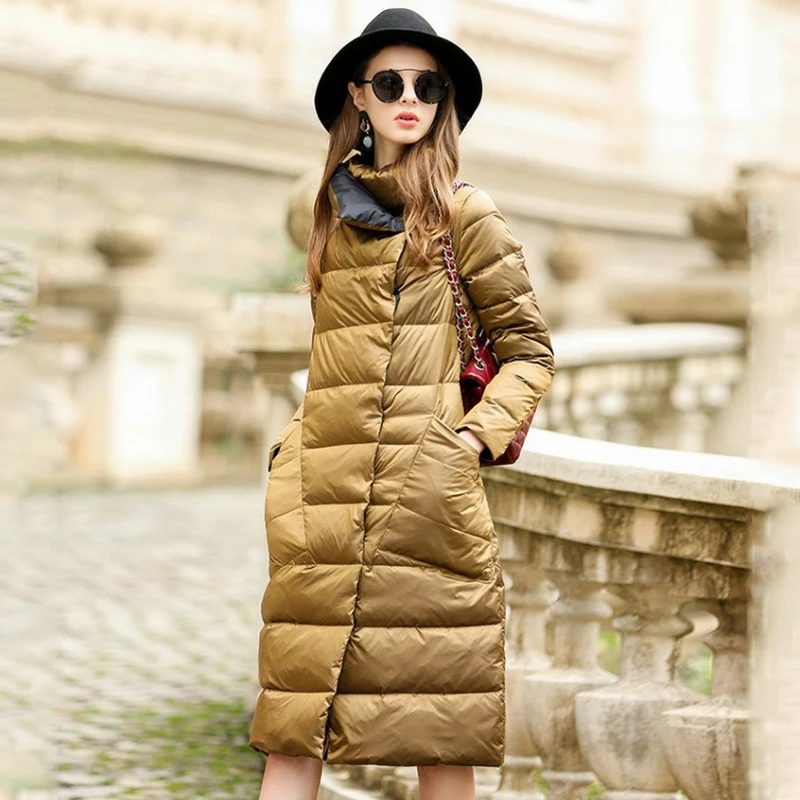 Куртка женская двухсторонняя на утином пуху, длинная, размера плюс