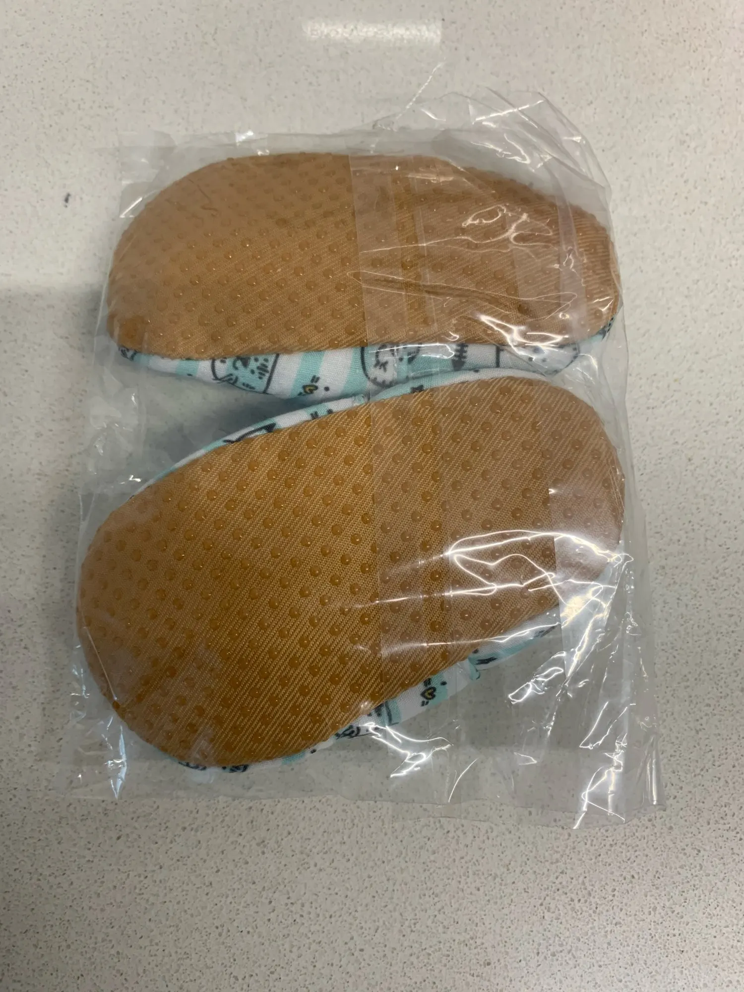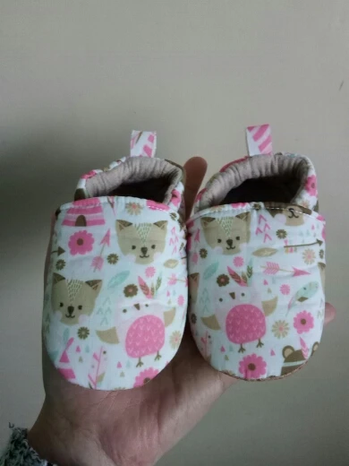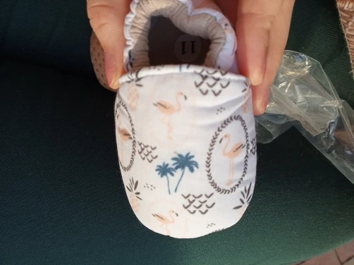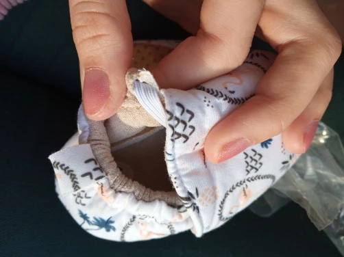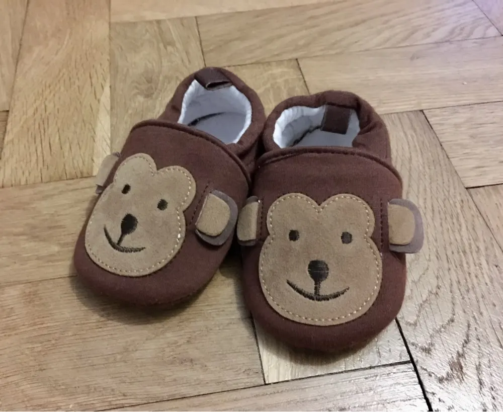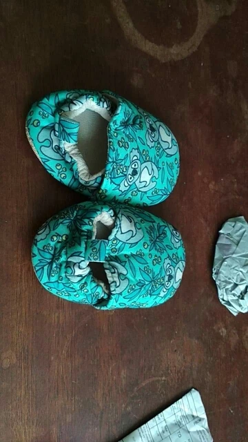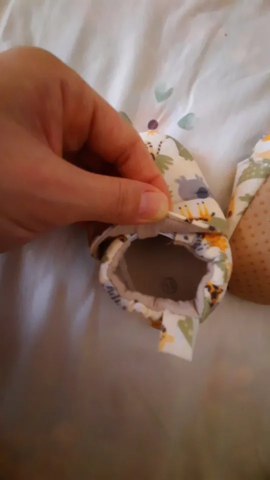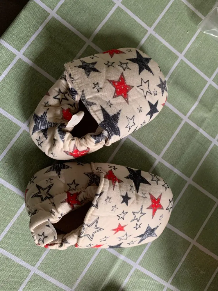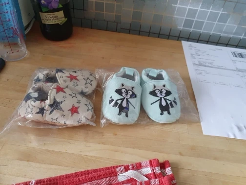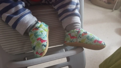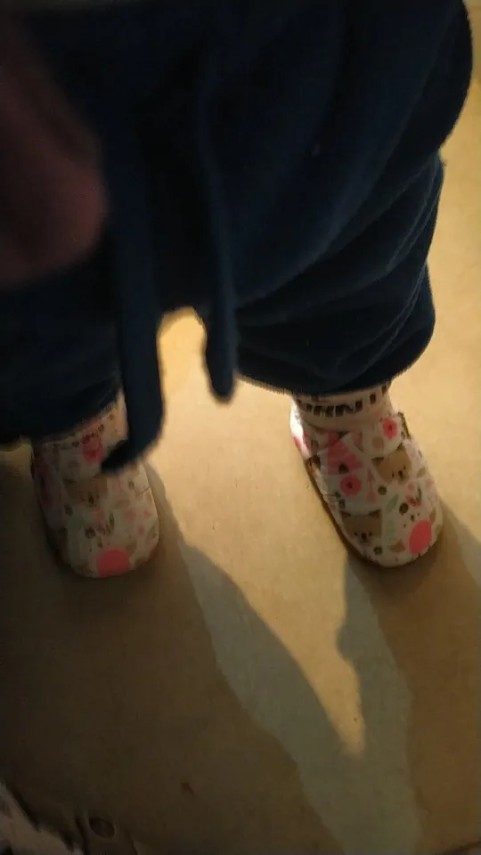 красивые тапочки, размер 5 подошел ребенку 1.3 года, ножка 12см. Но... Тапки пахнут химией, ножки вспотели спустя пару минут, как померили! На голую ногу не вариант. Если только на носочек и по холодному полу. Еще почему-то подошва одного тапочка изначально грязная, как только открыла. Все бы ничего, но ноги очень сильго вспотели, вряд ли дочка будет носить.