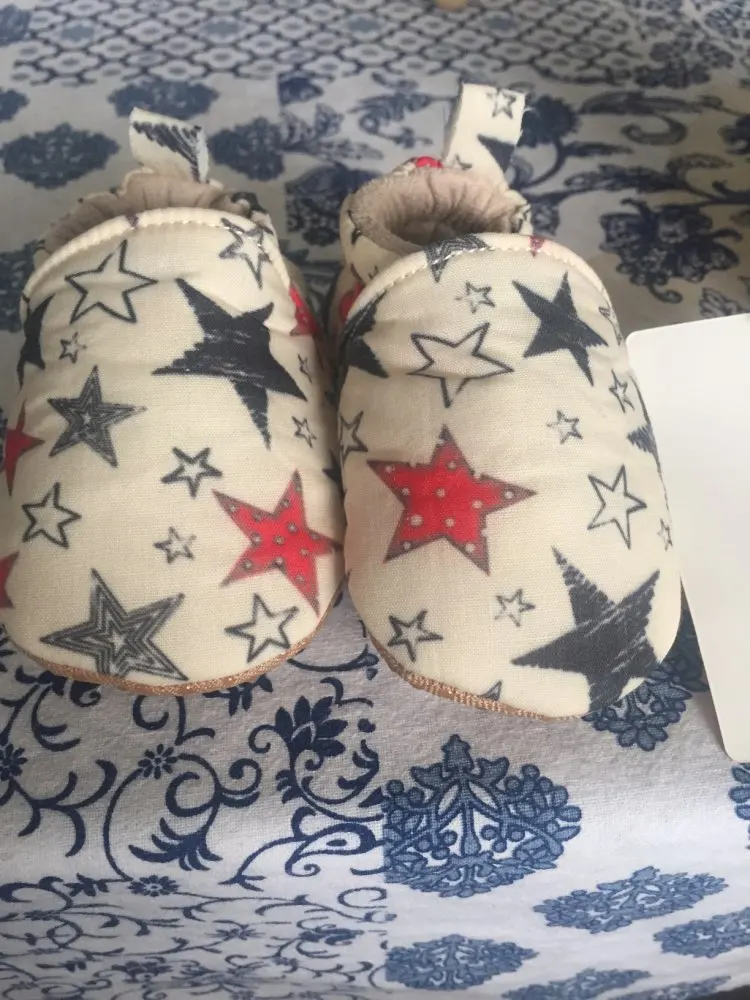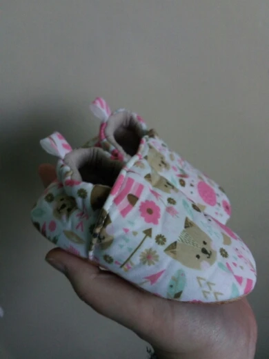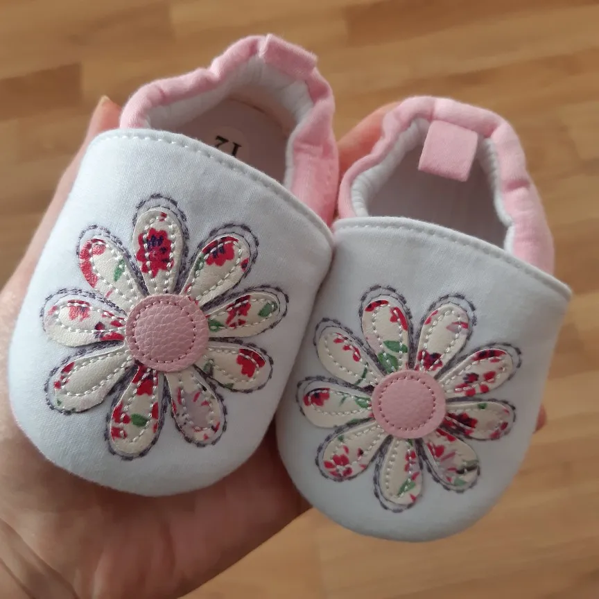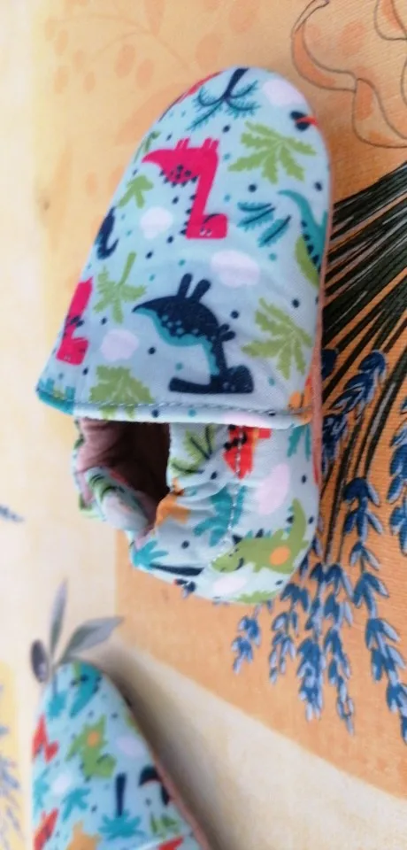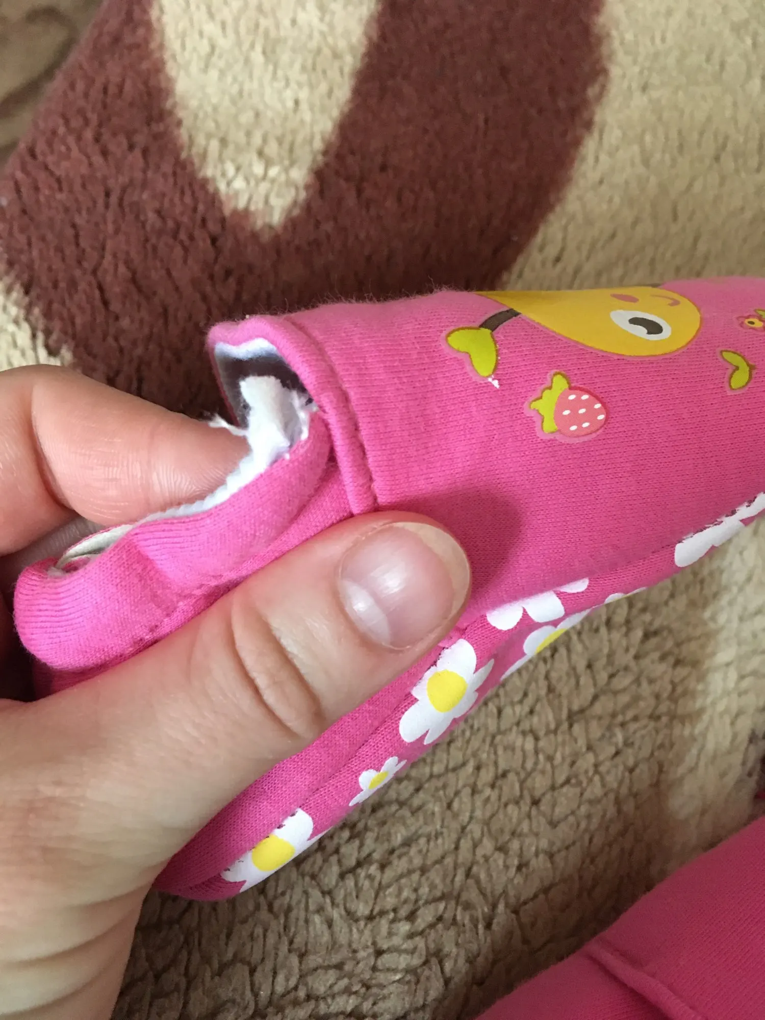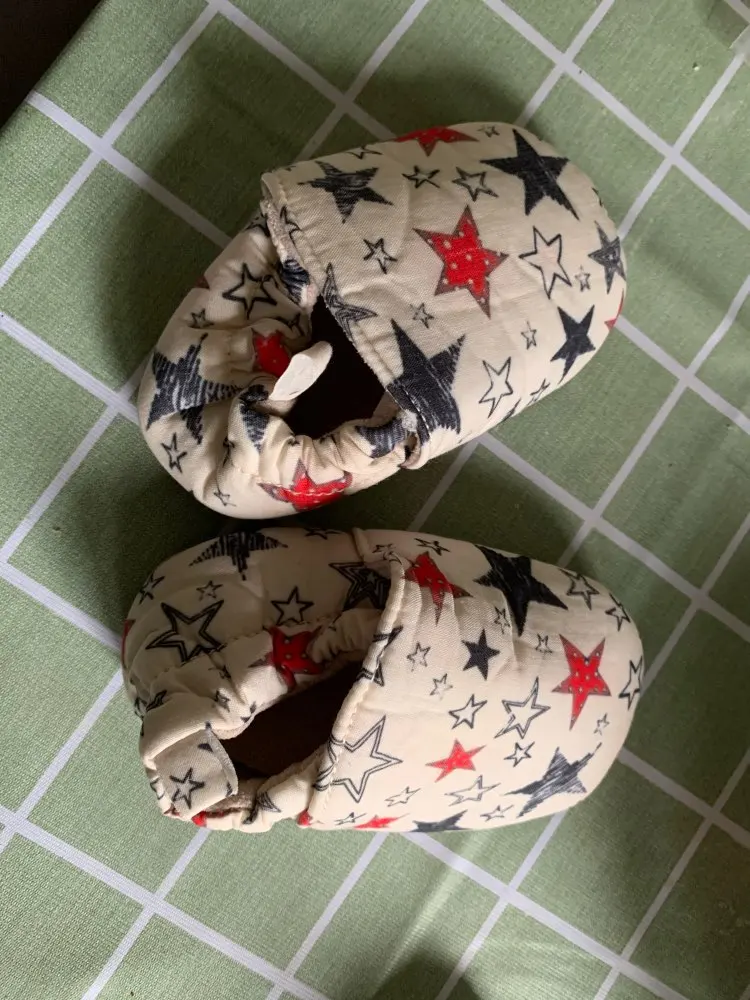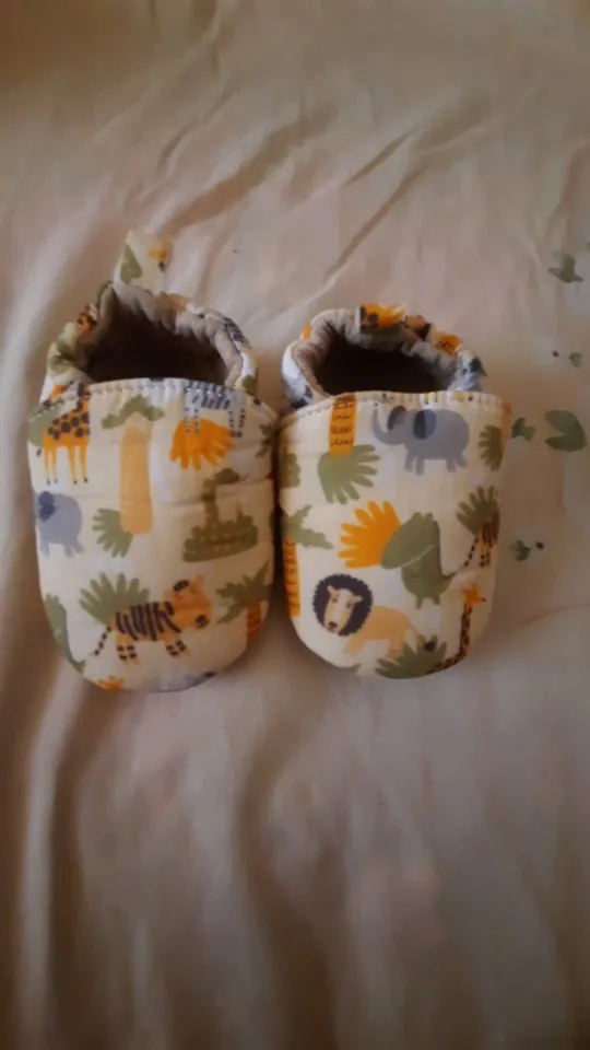 красивые тапочки, размер 5 подошел ребенку 1.3 года, ножка 12см. Но... Тапки пахнут химией, ножки вспотели спустя пару минут, как померили! На голую ногу не вариант. Если только на носочек и по холодному полу. Еще почему-то подошва одного тапочка изначально грязная, как только открыла. Все бы ничего, но ноги очень сильго вспотели, вряд ли дочка будет носить.